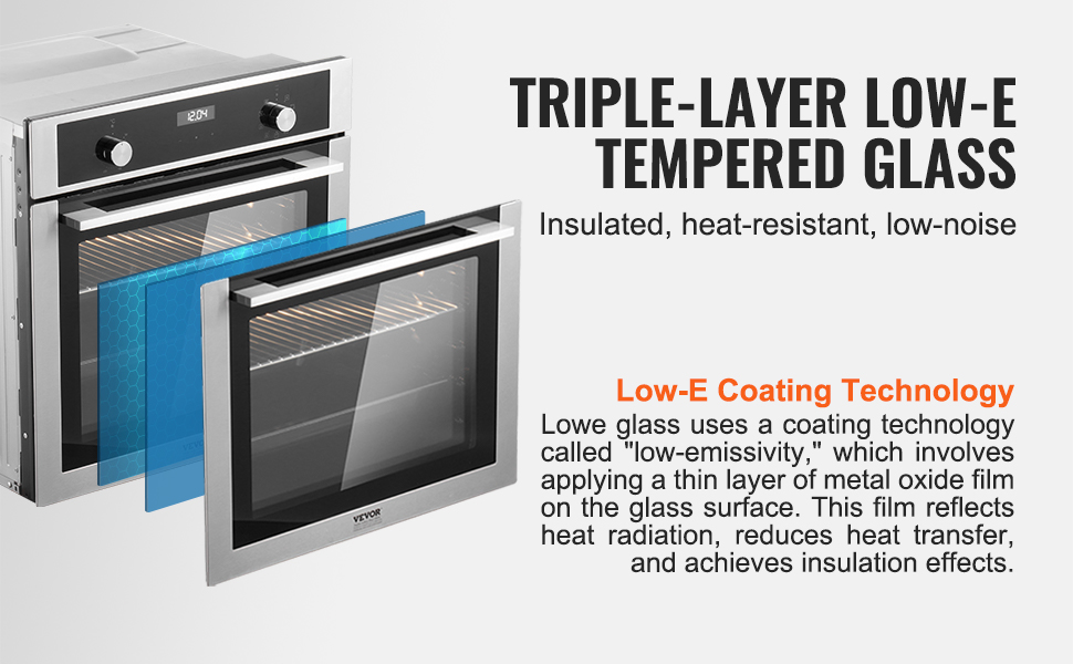 Vstavaná rúra vybavená trojvrstvovým tvrdeným sklom a technológiou Low-E povrchovej úpravy účinne znižuje prestup tepla, udržiava vonkajší povrch chladný na dotyk a pracuje ticho, aby sa zabránilo popáleniu a minimalizovalo rušenie hlukom.