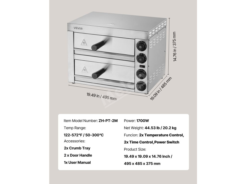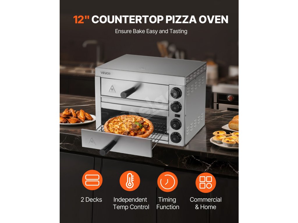 Elektrická pizza pec 12", 1700W, regulácia teploty, časovač 0–60 min