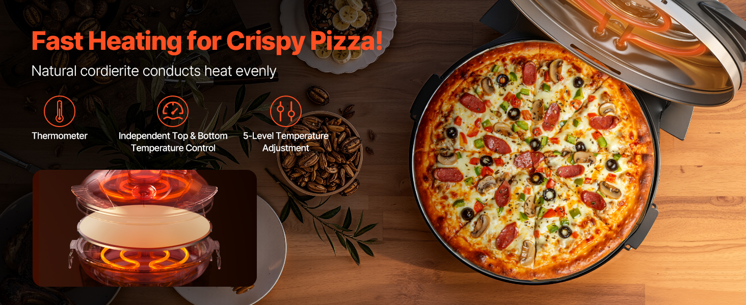 Nemusíte zapínať rúru ani dlho čakať - táto elektrická pec na pizzu vám umožní rýchlo pripraviť a vychutnať si chrumkavú, lahodnú chrumkavú pizzu doma, čím ušetríte čas a námahu.