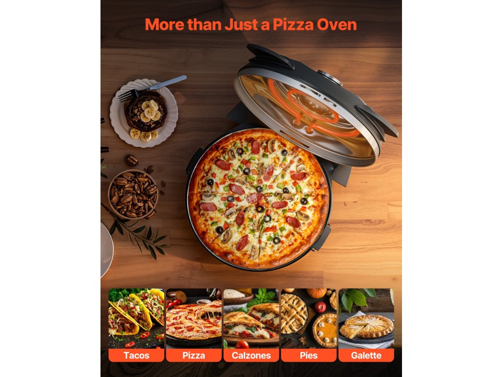 Nemusíte zapínať rúru ani dlho čakať - táto elektrická pec na pizzu vám umožní rýchlo pripraviť a vychutnať si chrumkavú, lahodnú chrumkavú pizzu doma, čím ušetríte čas a námahu.