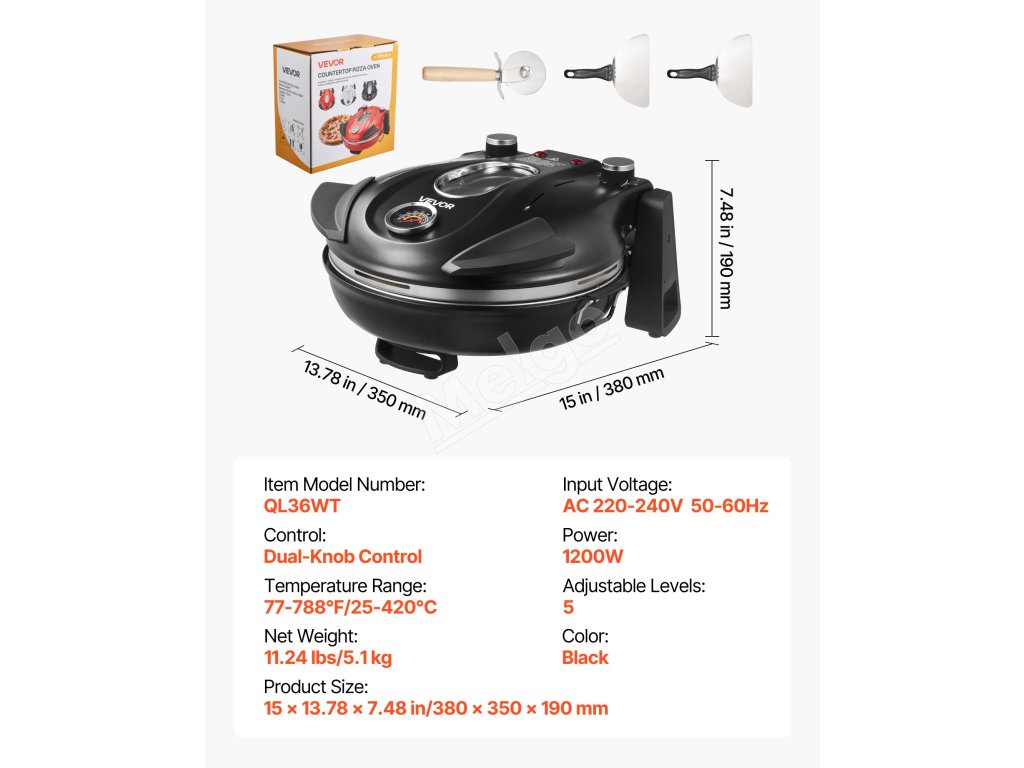 Elektrická pizza pec 304.8 mm 1200W cordierit kameň 5 rež., do 420℃