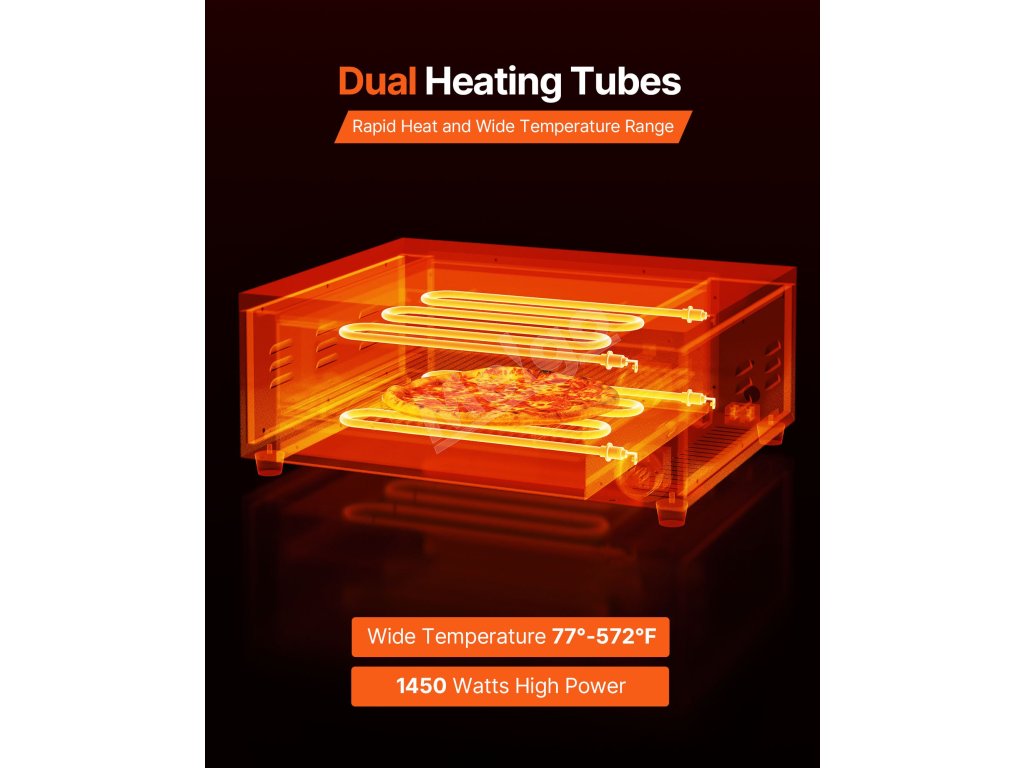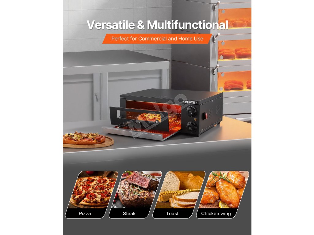Vysoko výkonná pec na pizzu vám v priebehu niekoľkých minút umožní vytvoriť chutnú a chrumkavú pizzu. Vďaka dvojitým horným a spodným ohrievacím rúrkam poskytuje 360° rovnomerné pečenie a rýchly ohrev na rýchle pečenie, čoho výsledkom je vždy dobre prepečené jedlo.