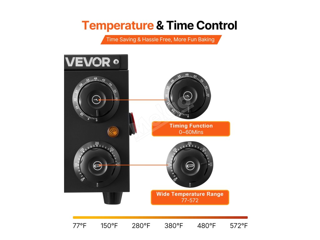 Vychutnajte si plnú kontrolu nad pečením vďaka samostatným gombíkom pre teplotu a čas. Ručne nastavte teplotu od 77°F do 572°F (25-300 ℃) pre flexibilnú presnosť pečenia prispôsobenú každému štýlu pizze a osobným preferenciám.