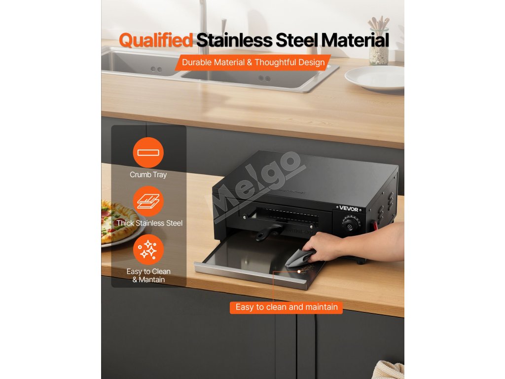 Táto komerčná pec na pizzu, vyrobená s odolným telom a konštrukciou odolnou proti poškriabaniu, ponúka dlhodobý výkon a čisté prostredie na pečenie. Vďaka hladkému, ľahko čistiteľnému interiéru je čistenie po varení bezproblémové.