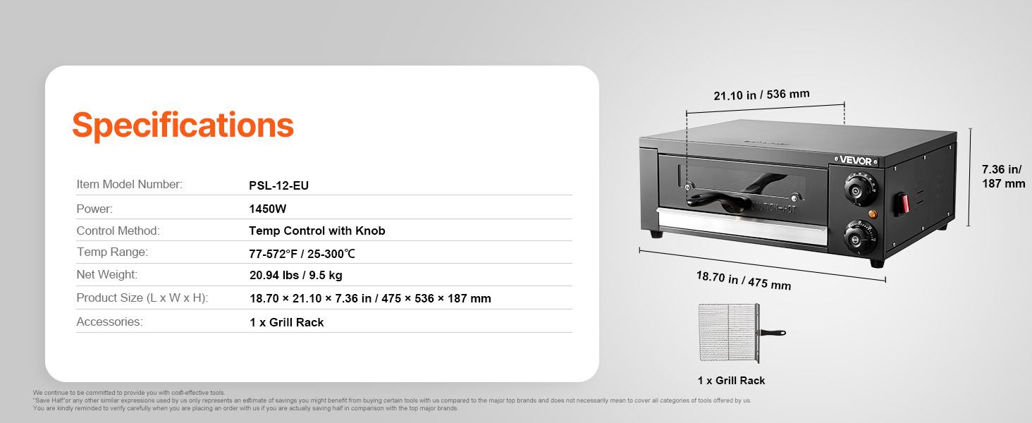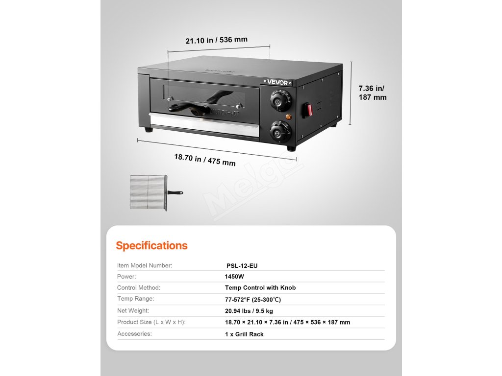 Elektrická pizza pec 304.8 mm 25–300℃ 1450 W, časovač a regulácia