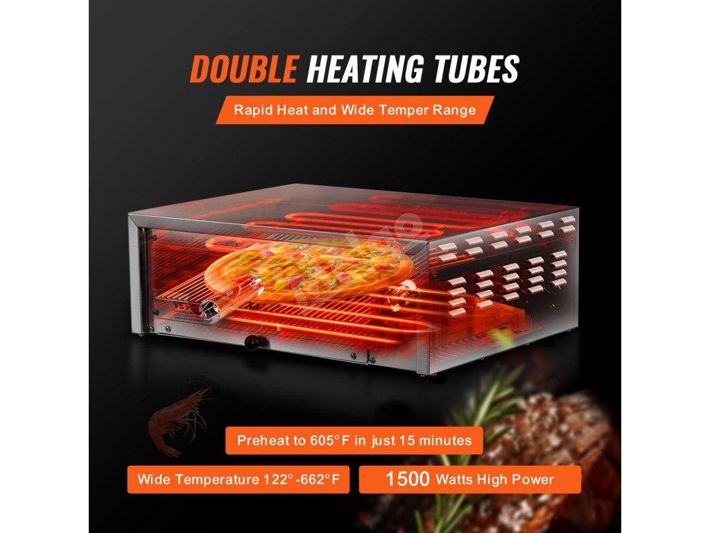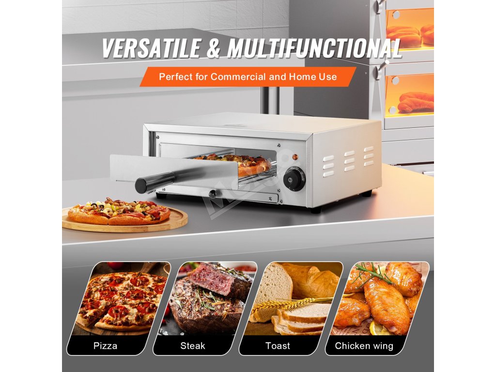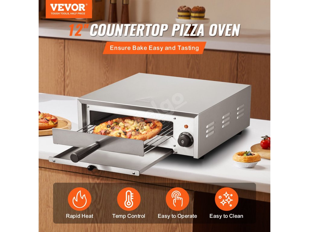 12-palcová elektrická pec na pizzu VEVOR sa môže pochváliť konštrukciou z potravinárskej nehrdzavejúcej ocele, presnou reguláciou teploty 122-662℉/50-350 ℃. vysoký výkon 1500 W a vykurovacie rúrky v tvare U zabezpečujú rovnomerné a efektívne rozloženie tepla pre vždy dokonalé výsledky pečenia!