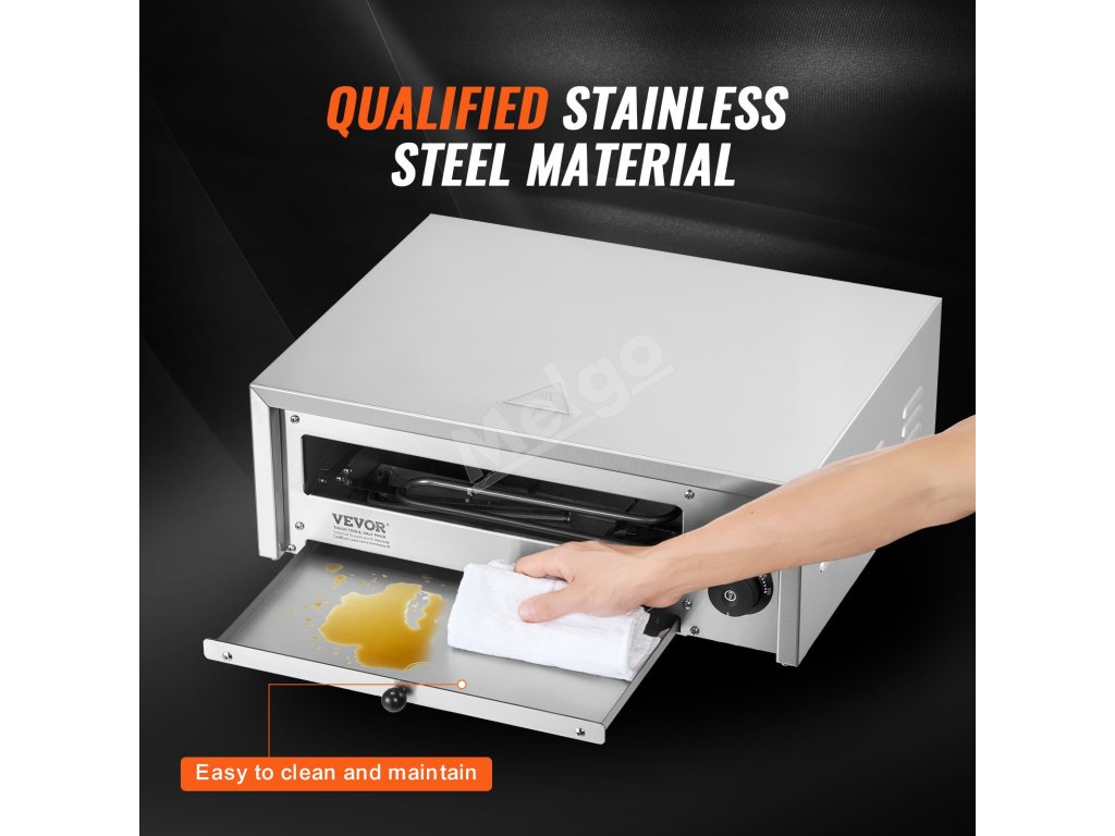 Komerčná pec na pizzu VEVOR, vyrobená z potravinárskej nehrdzavejúcej ocele, zaručuje nielen odolnosť, ale aj bezpečné a zdravé prostredie na pečenie. Navyše nepriľnavý vnútorný materiál umožňuje bezproblémové čistenie a zábavné varenie.