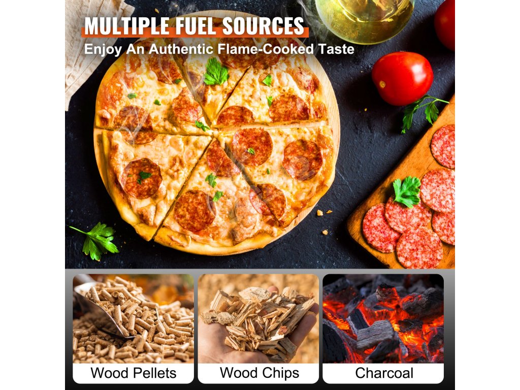 Táto 12-palcová pec na pelety je veľmi všestranná a ako palivo podporuje drevené pelety, drevnú štiepku alebo drevené uhlie. Vyberte si drevo pre autentickú chuť alebo drevené uhlie pre pomalé varenie. Jej veľký zásobník na palivo s hmotnosťou 480 gramov minimalizuje dopĺňanie paliva, čo umožňuje dlhšie a neprerušované varenie. Vďaka tejto flexibilite je ideálny na kempovanie alebo stretnutia na dvore, pretože vám zaručí, že vždy budete mať k dispozícii palivo podľa svojich potrieb.