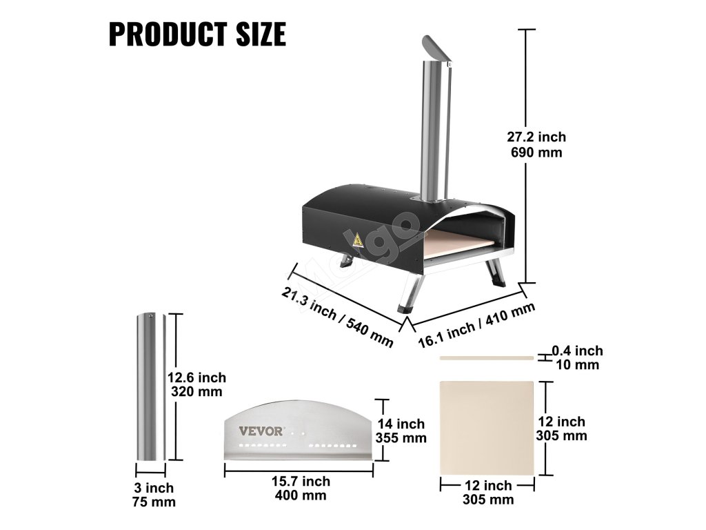 | Hrúbka kameňa na pizzu | 0.4"/10 mm |