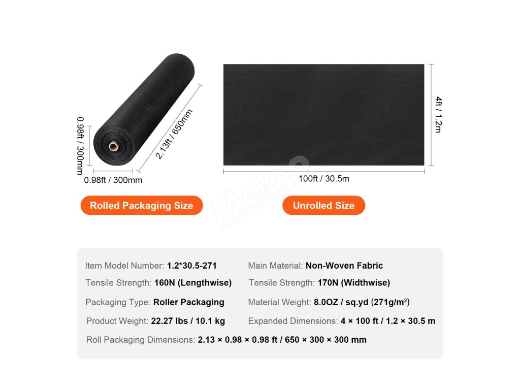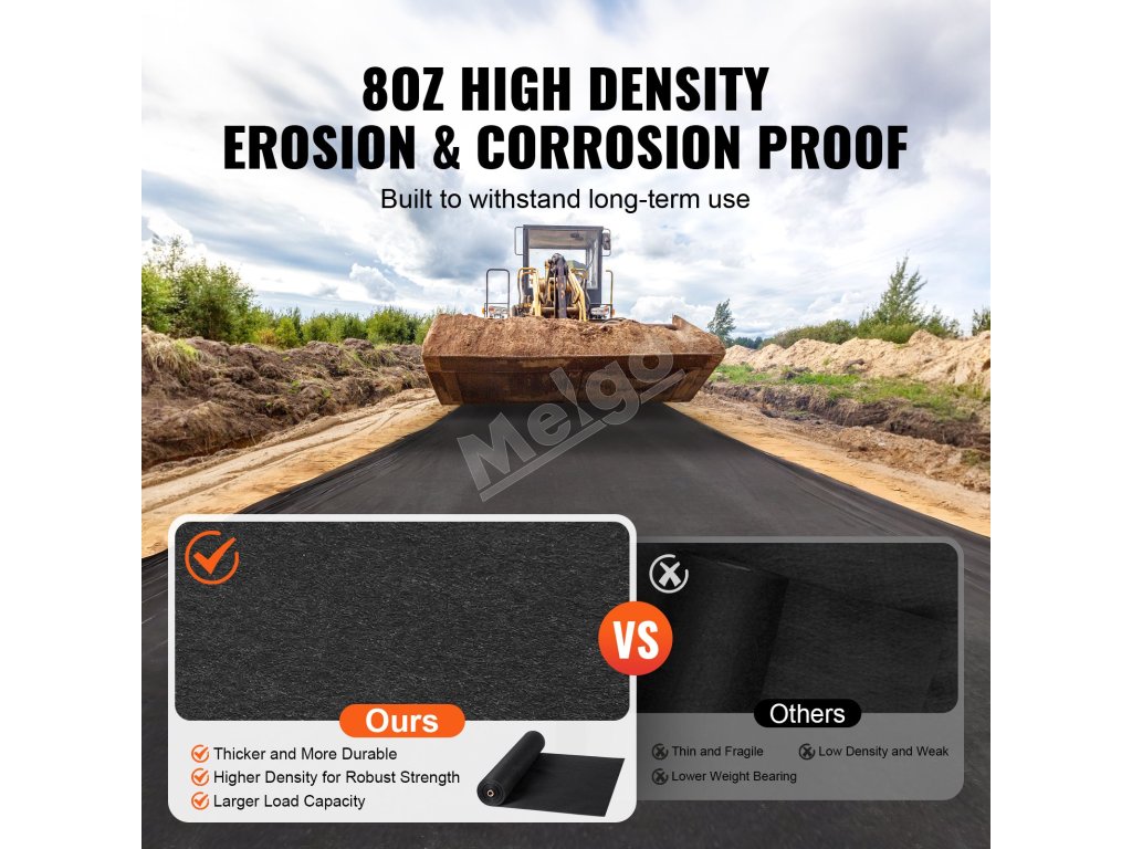 Rozlúčte sa s tvrdohlavou burinou! Krajinná textília VEVOR 4 x 100 ft, 8OZ s vysokou hustotou proti burine sa môže pochváliť výnimočnou priepustnosťou a priedušnosťou, pričom ponúka odolnosť proti roztrhnutiu, korózii a erózii. Zlepšuje zdravie pôdy tým, že kontroluje rast burín, a chráni záhradu s istotou.