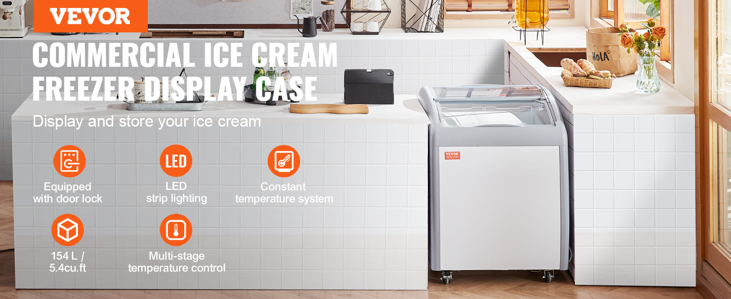 Mobilnú truhlicovú mrazničku so skleneným vrchom možno používať v kaviarňach, nápojových baroch, zmrzlinárňach, supermarketoch a na iných miestach, kde umožňuje dlhodobé vystavovanie zmrzliny.