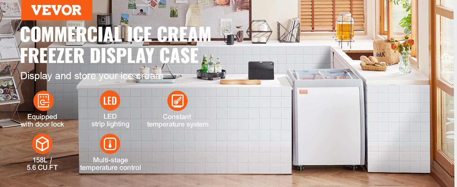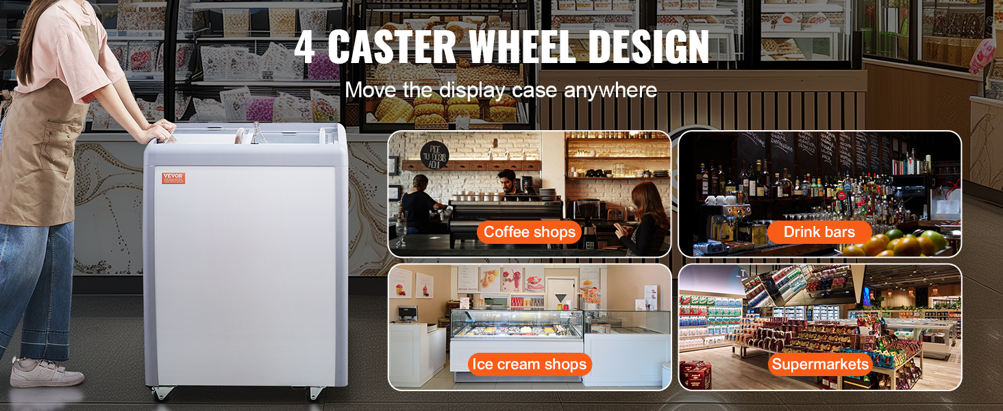 Mobilnú truhlicovú mrazničku so skleneným vrchom možno používať v kaviarňach, nápojových baroch, zmrzlinárňach, supermarketoch a na iných miestach, kde umožňuje dlhodobé vystavovanie zmrzliny.