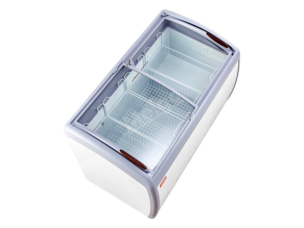 Truhlicový mraziak na zmrzlinu 362 L, 2 posuvné sklá, 4 koše, kolieska