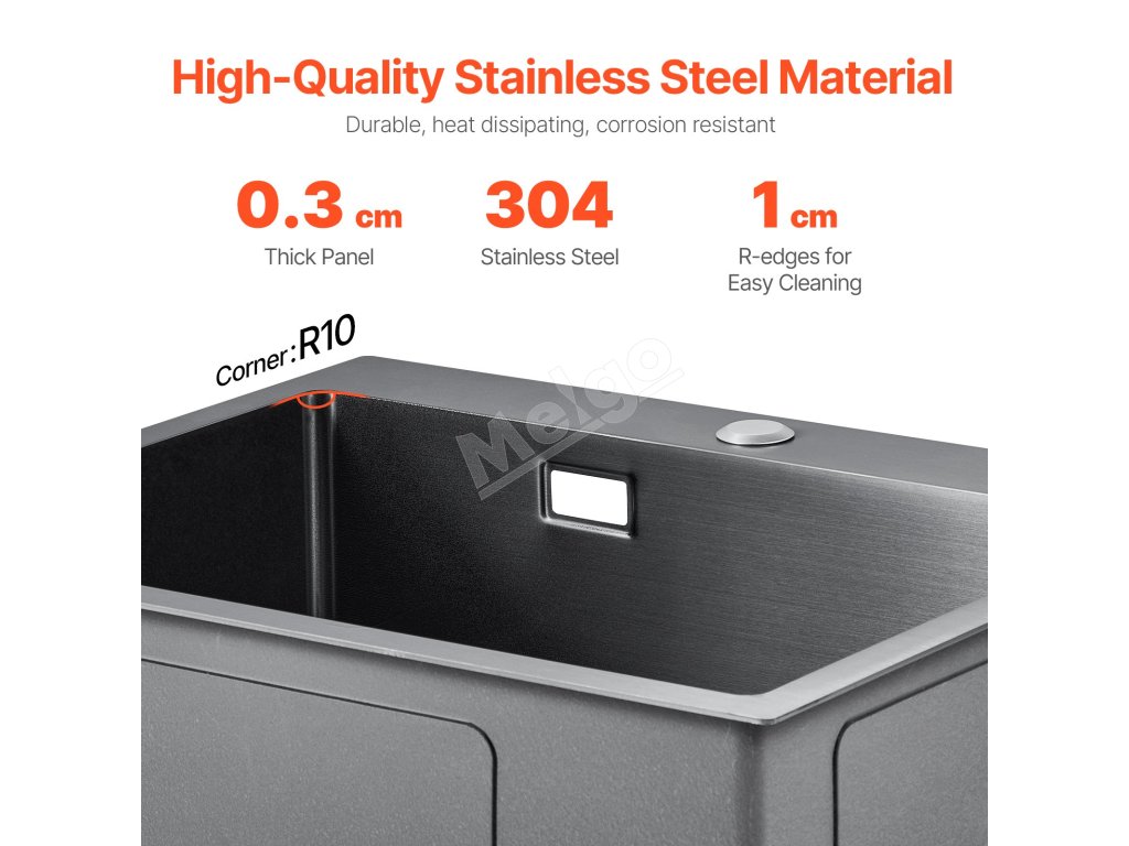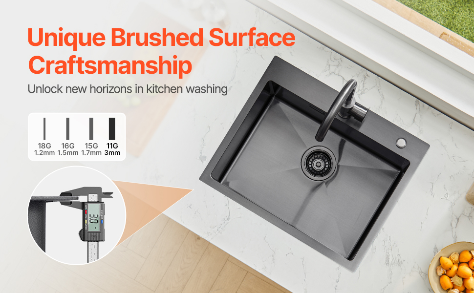 Barový drez s hornou montážou sa ľahko inštaluje, nevyžaduje si žiadne väčšie úpravy kuchynských skriniek ani pracovnej dosky. Mimoriadne hrubý 3 mm okraj z nehrdzavejúcej ocele 304 umožňuje bezpečnú inštaláciu na hornú montáž; hrubé telo drezu zaručuje odolnosť.