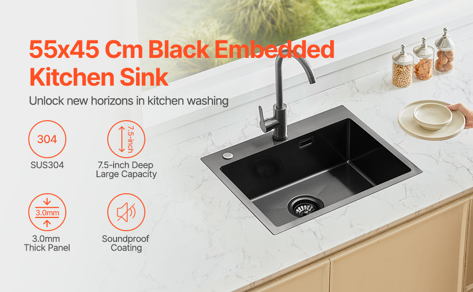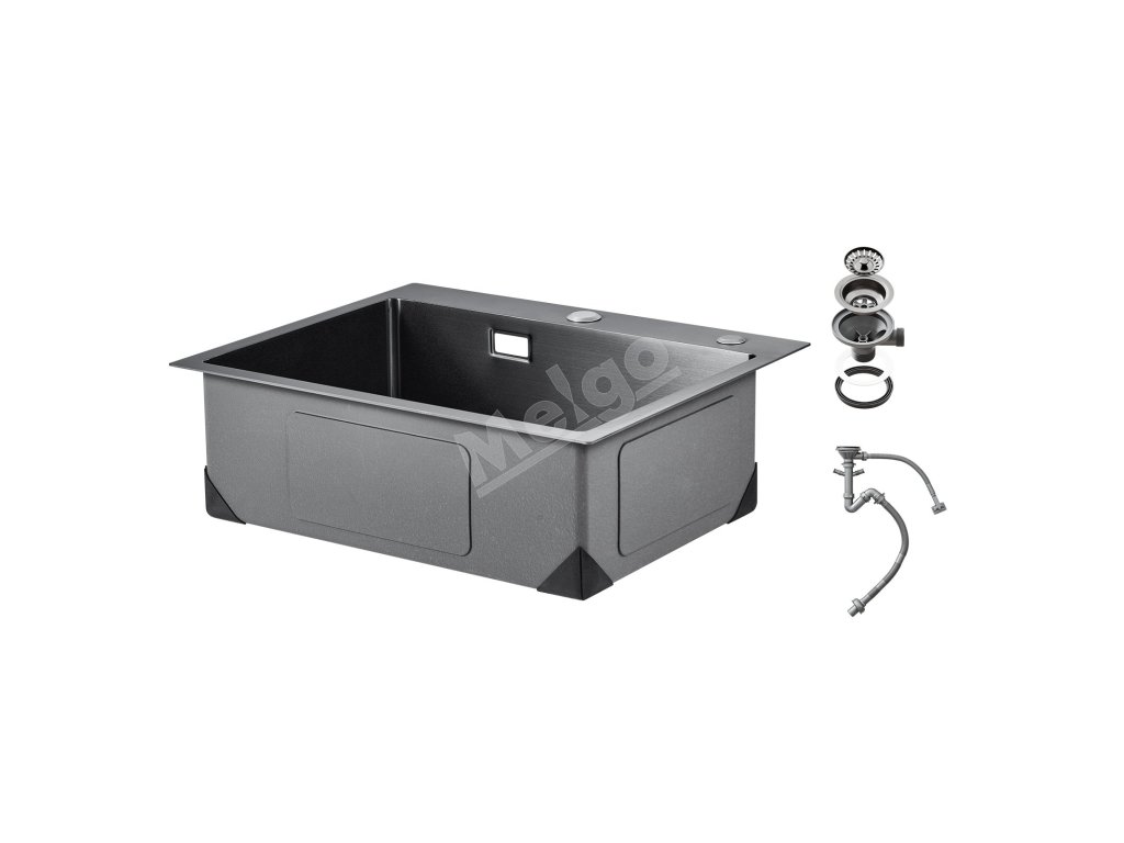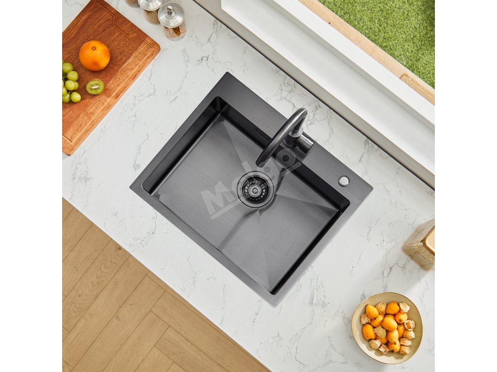 Kuchynský vkladaný drez 55 cm, jednokomorový, 304 nerez, čierny