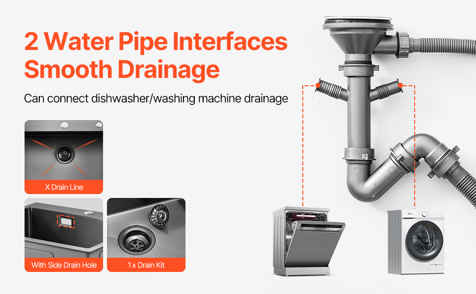 Prípravný kuchynský drez má v spodnej časti dizajn odtoku v tvare písmena X, ktorý je vybavený odtokovou súpravou na zabezpečenie rýchleho odtoku a zabránenie hromadeniu vody. Okrem toho obsahuje bočný odtokový otvor s 2 rozhraniami vodovodného potrubia na pripojenie umývačky riadu, čím sa zabezpečí plynulé odvádzanie vody.