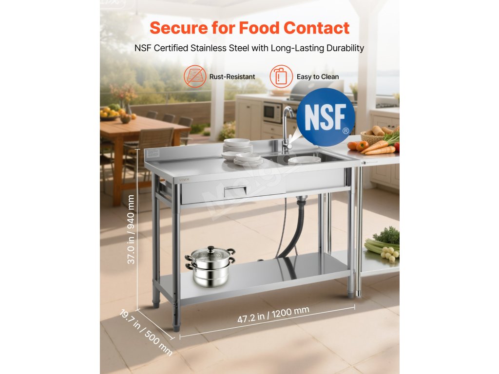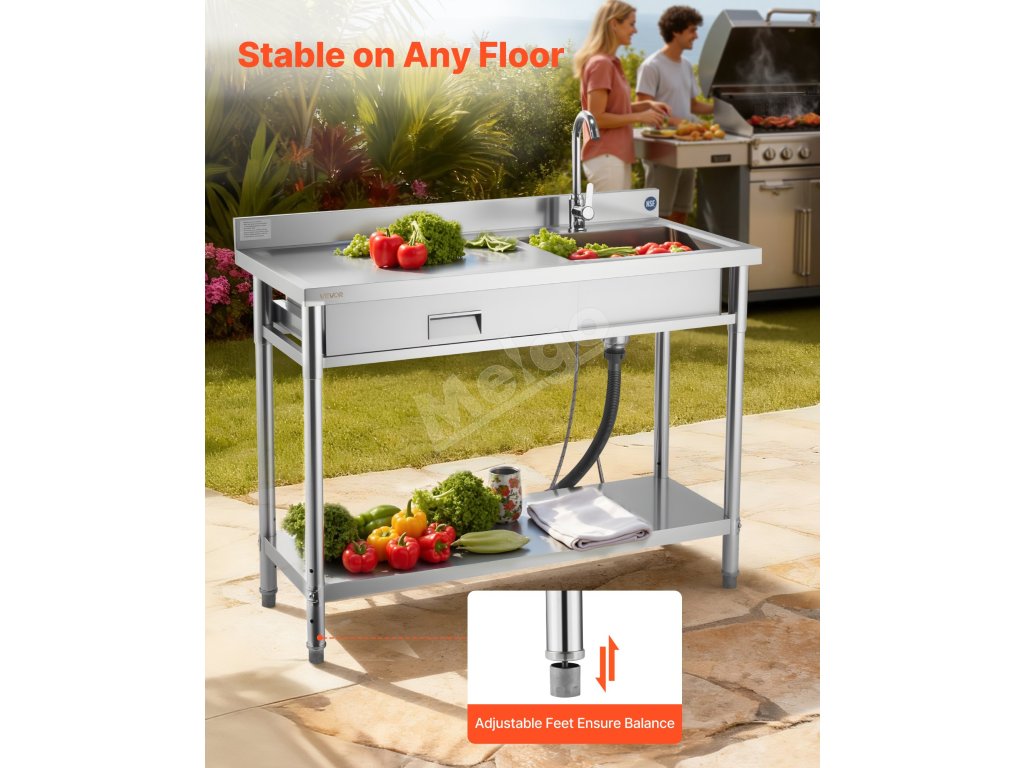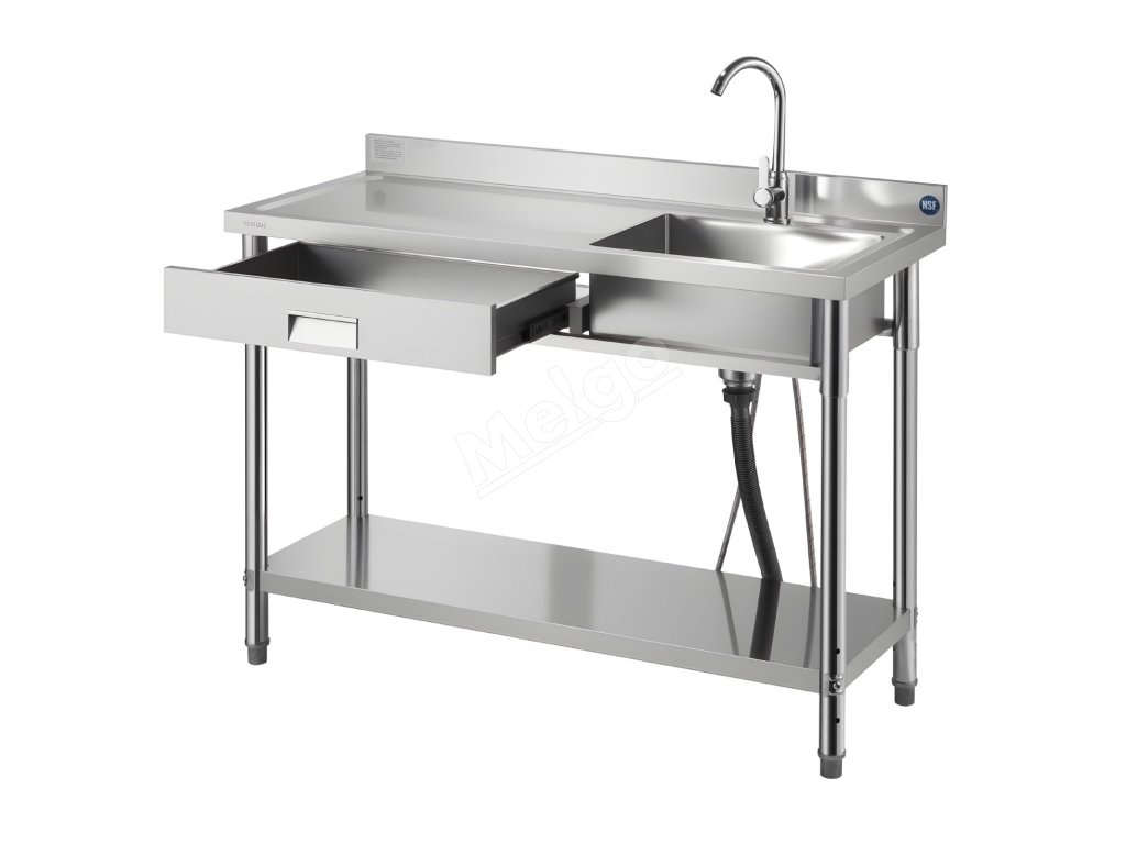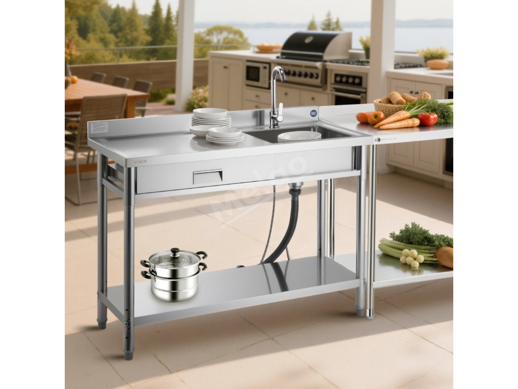 Dizajn 4 v jednom integruje pracovný stôl, drez, nastaviteľnú odkladaciu poličku a praktickú zásuvku, čím zjednodušuje umývanie a organizáciu v jednom kroku. Priestranný drez zvládne akúkoľvek čistiacu úlohu, nastaviteľné spodné police poskytujú flexibilný úložný priestor a zásuvka udržiava náradie a drobné predmety na dosah.