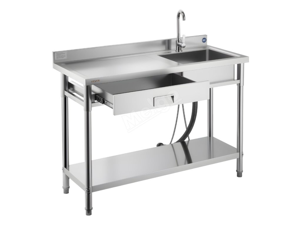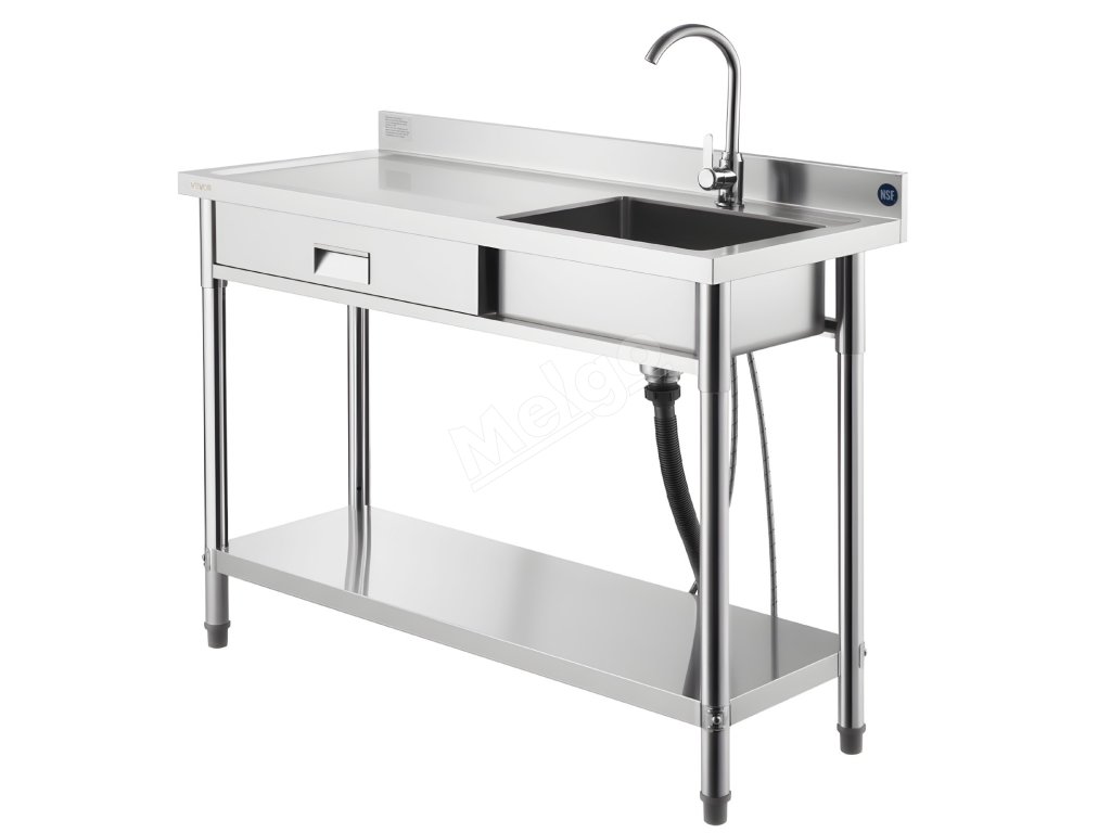 Nerezový pojazdný jednokomorový drez s batériou 1200×500×940 mm