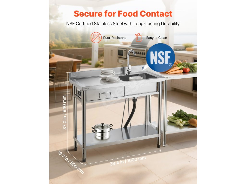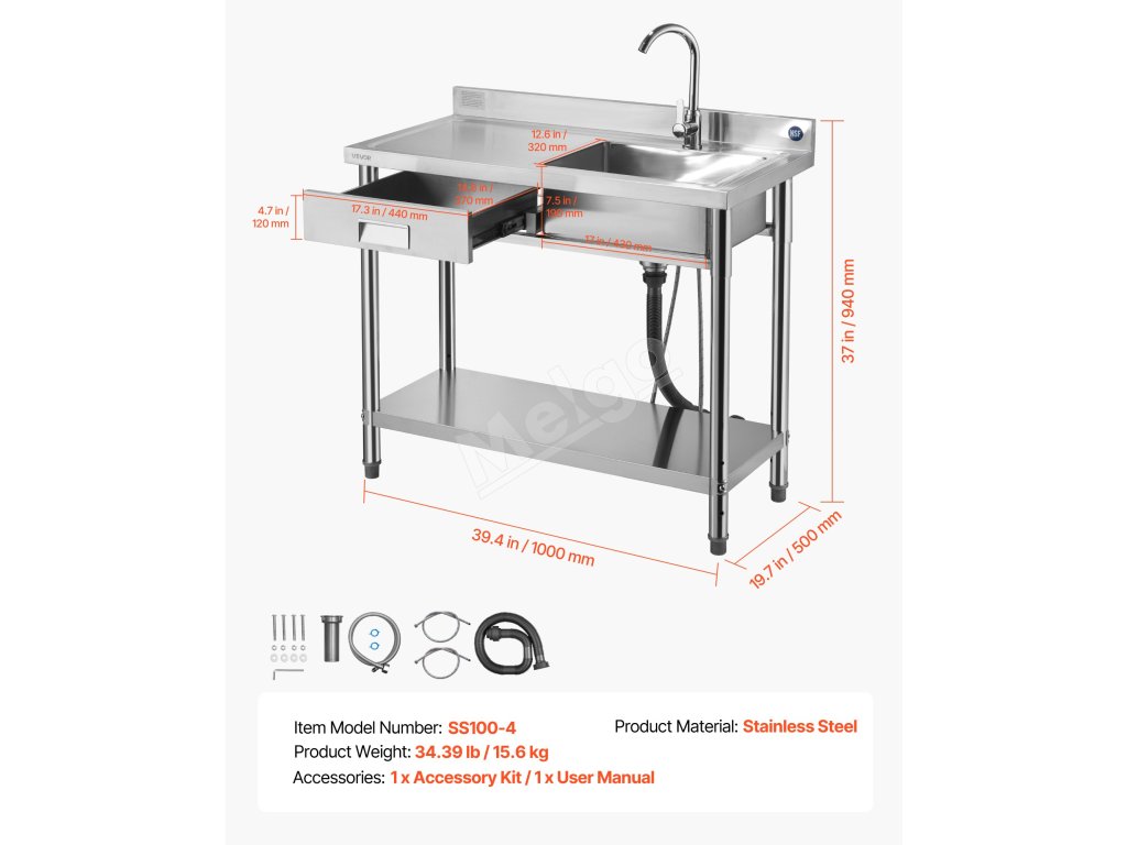 Nerezový samostatný jednovaničkový drez s batériou 1000×500×940 mm