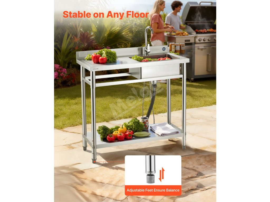 Dizajn "všetko v jednom" kombinuje pracovnú dosku, drez a nastaviteľnú odkladaciu poličku, vďaka čomu je umývanie a organizácia bez námahy. Priestranný drez zvládne rôzne čistiace úlohy, zatiaľ čo nastaviteľné spodné police poskytujú flexibilný úložný priestor pre rôzne predmety, čím sa ľahko prispôsobia viacerým scenárom.