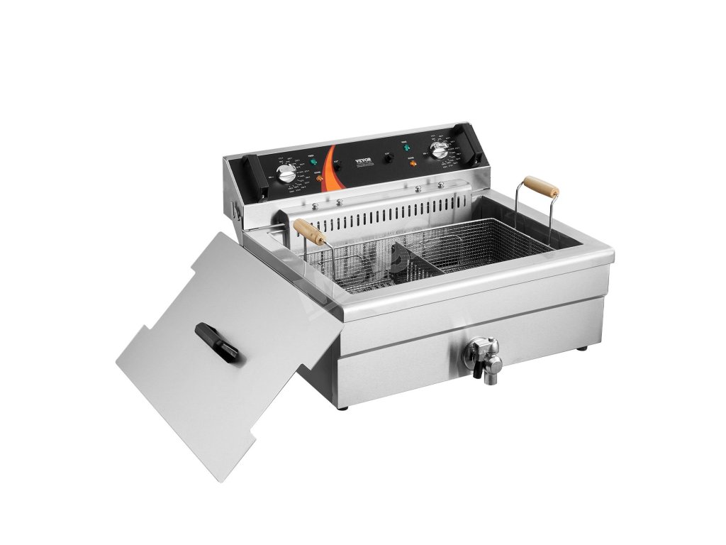 Táto komerčná elektrická fritéza je vybavená dvojitým vykurovacím telesom, ktoré rýchlo zohreje olej na požadovanú teplotu, čím zabezpečí rýchle a dôkladné varenie.