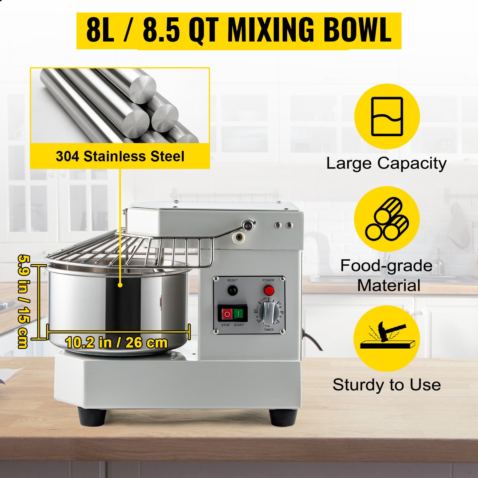 Spirálový mixér na cesto kapacita 8 L, nerezová misa, 2 rýchlosti