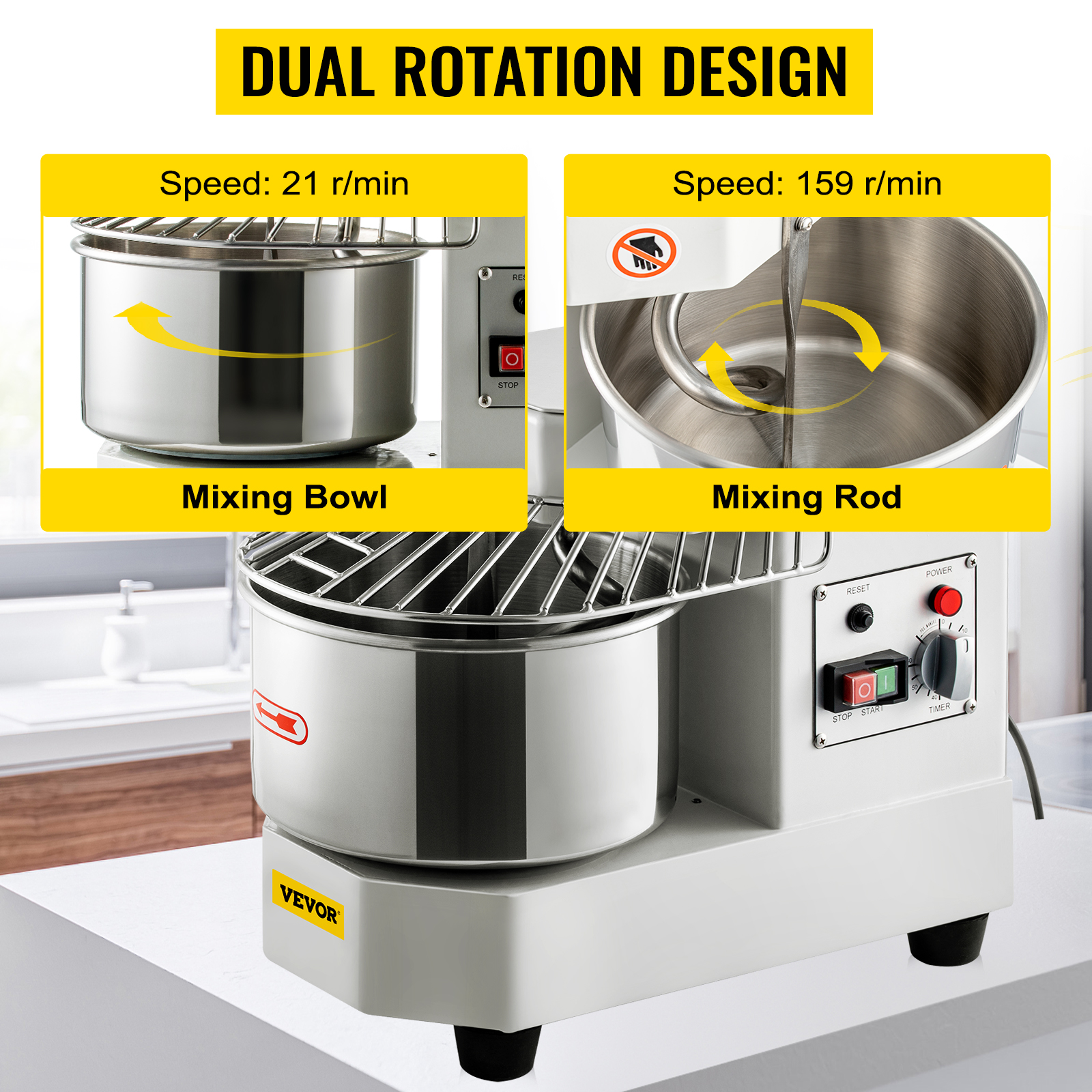 Miešacia misa a hák sú špeciálne navrhnuté tak, aby sa otáčali súčasne v smere hodinových ručičiek rýchlosťou 21 ot/min a 159 ot/min. Vďaka tomuto dvojitému systému miešania je účinok miešania lepší ako pri bežných miešadlách.