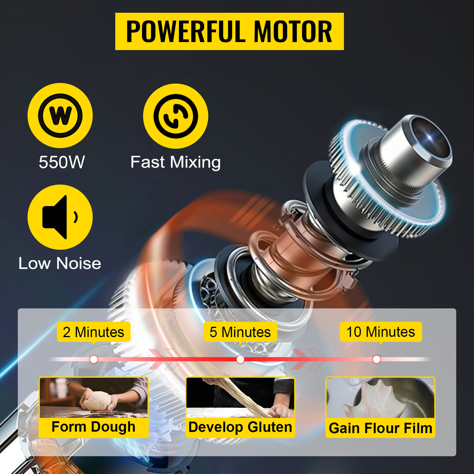 Náš mixér na cesto využíva 550W motor s vysokým výkonom a silným pohonom. Poskytuje rýchle a rovnomerné miešanie cesta s nízkou hlučnosťou, čím zabezpečuje spoľahlivé dlhodobé používanie.