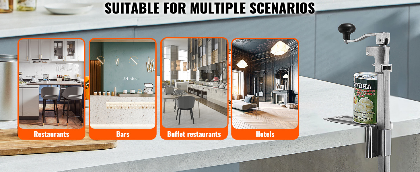 Tento otvárač konzerv sa vo veľkej miere používa v baroch, hoteloch, komerčných stravovacích zariadeniach, reštauráciách, na lodiach a vo vojenských zariadeniach, čo dokazuje jeho silnú praktickosť.