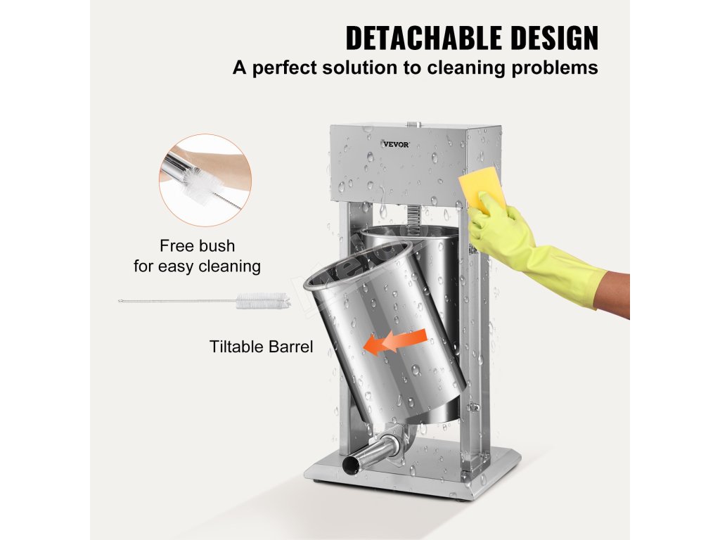 Prijíma 260W účinný motor, ktorý pracuje rýchlo a stabilne po dlhú dobu bez tlaku. Jedna osoba môže bez námahy dokončiť celý proces výroby klobás pomocou nožného spínača.