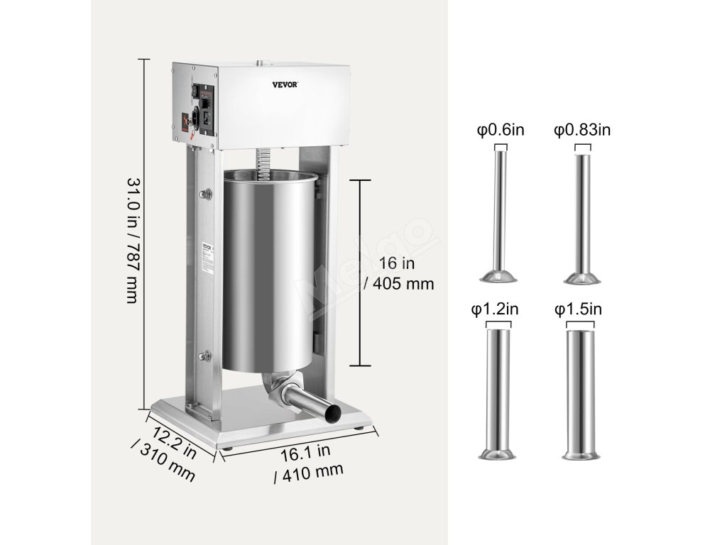 Tento elektrický stroj na výrobu klobás využíva 260W motor s vysokým výkonom, ktorý je rýchly a šetrí prácu. Jeho dvojitý ventil na vypúšťanie vzduchu zabezpečuje, že klobásy sú tesné s menším množstvom vzduchových bublín. Otáčky možno flexibilne nastaviť. veľká kapacita 15 l je ideálna pre supermarkety, mäsiarstva a reštaurácie atď.