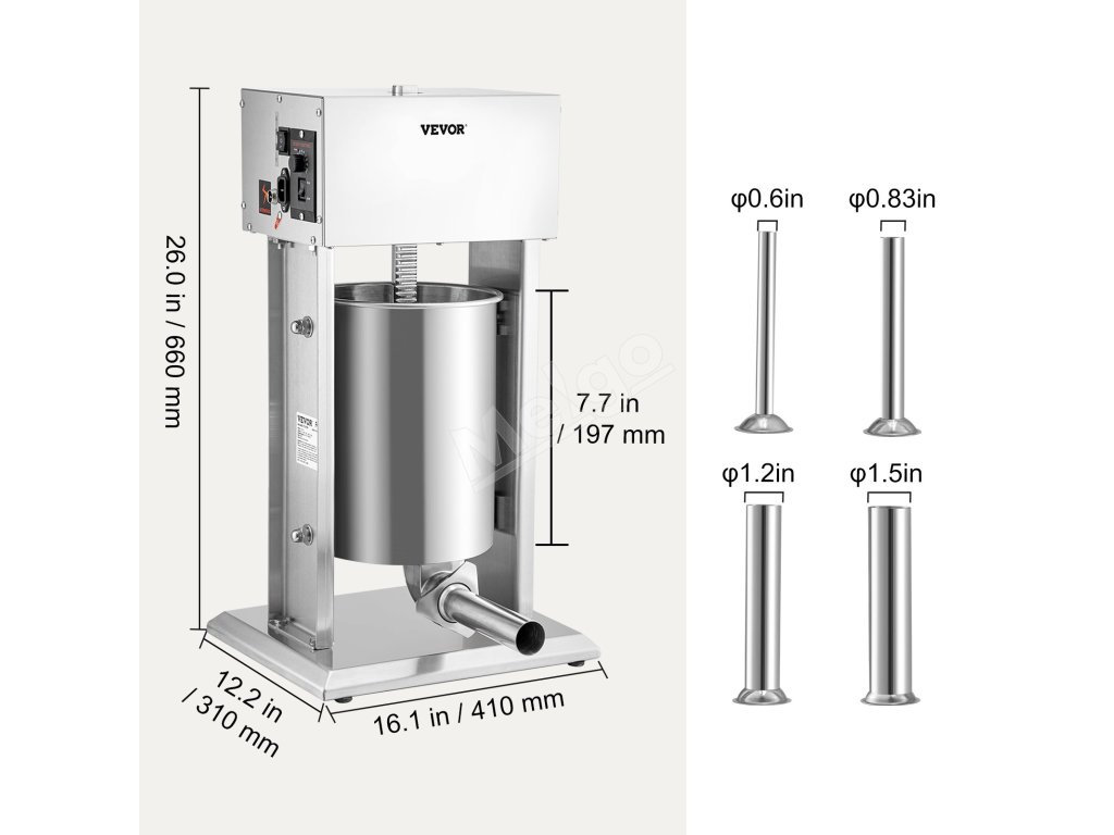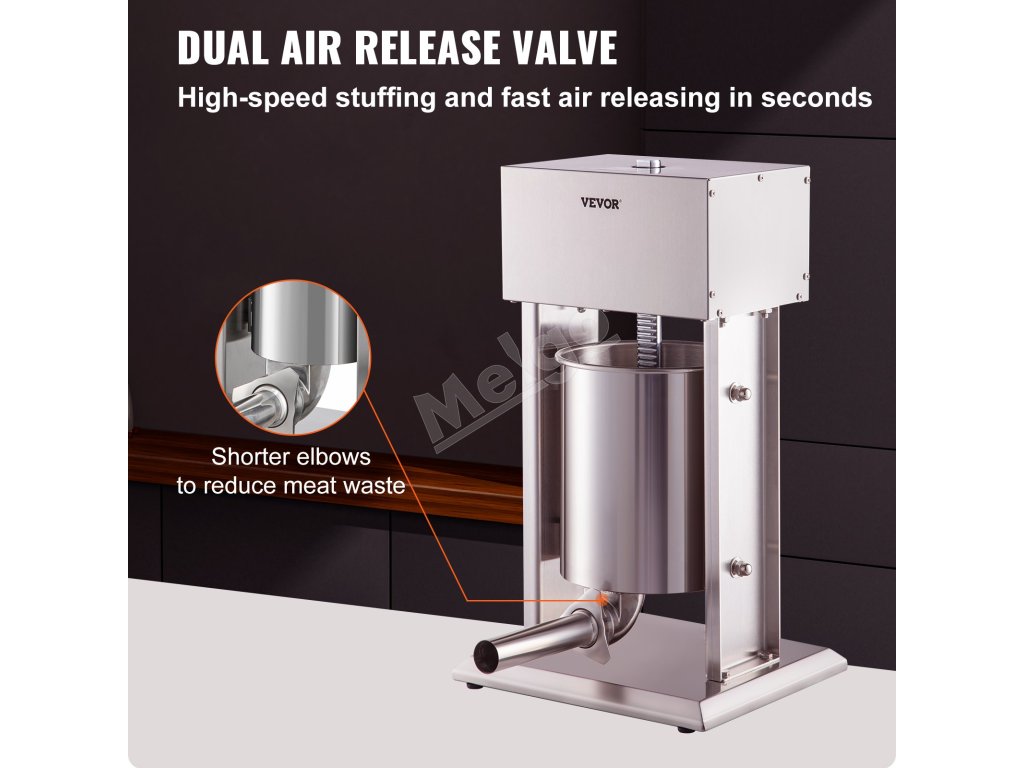 Tento elektrický stroj na výrobu klobás využíva 200W motor s vysokým výkonom, ktorý je rýchly a šetrí prácu. Jeho dvojitý ventil na vypúšťanie vzduchu zabezpečuje, že klobásy sú tesné s menším množstvom vzduchových bublín. Otáčky možno flexibilne nastaviť. veľká kapacita 10 l je ideálna pre supermarkety, mäsiarstva a reštaurácie atď.