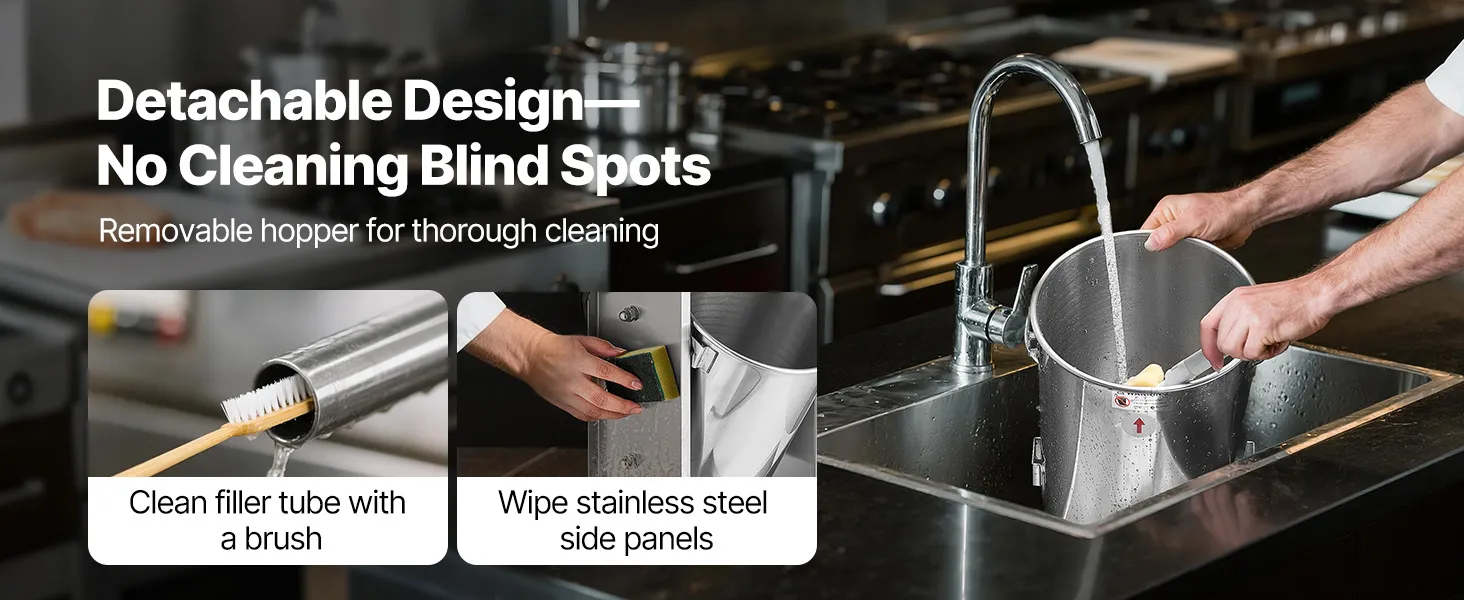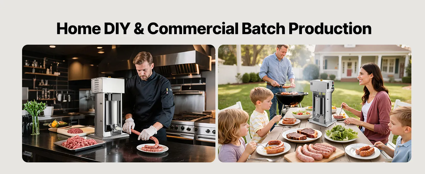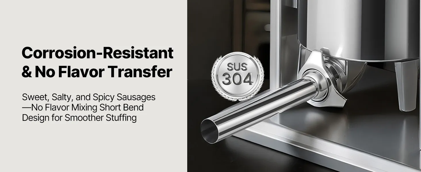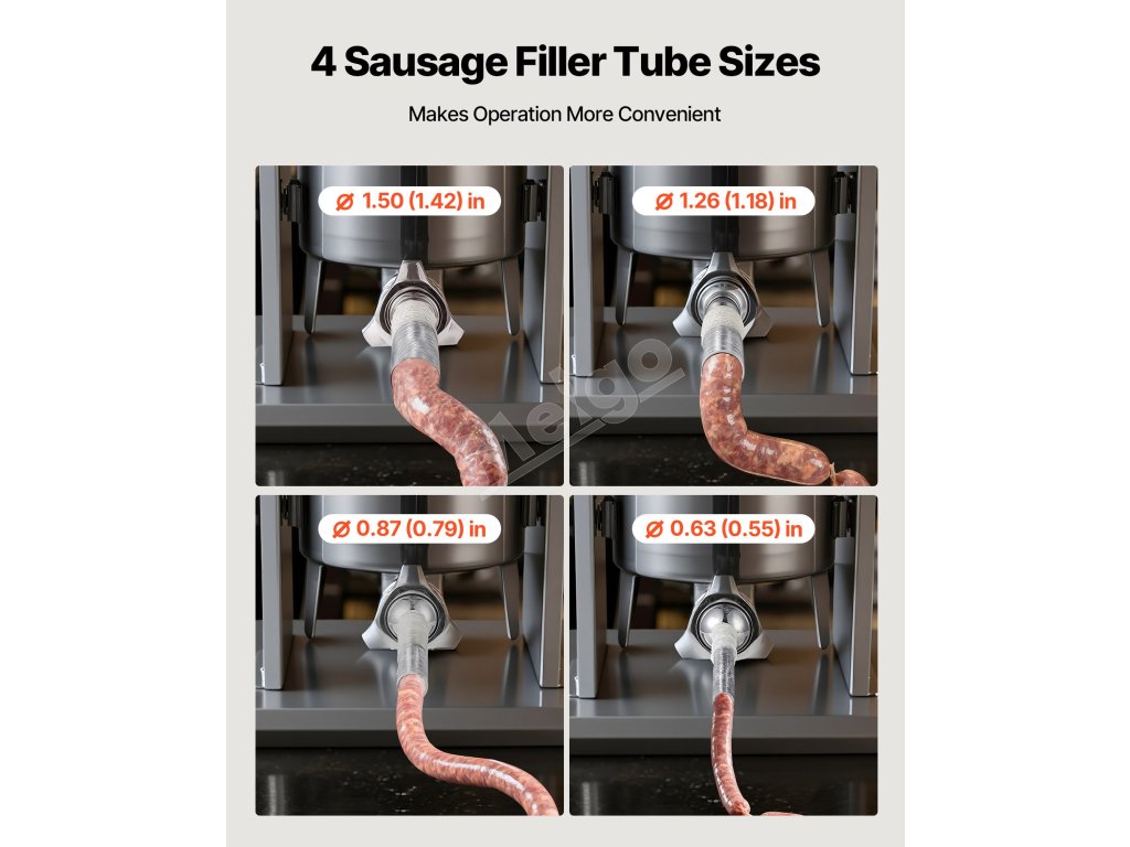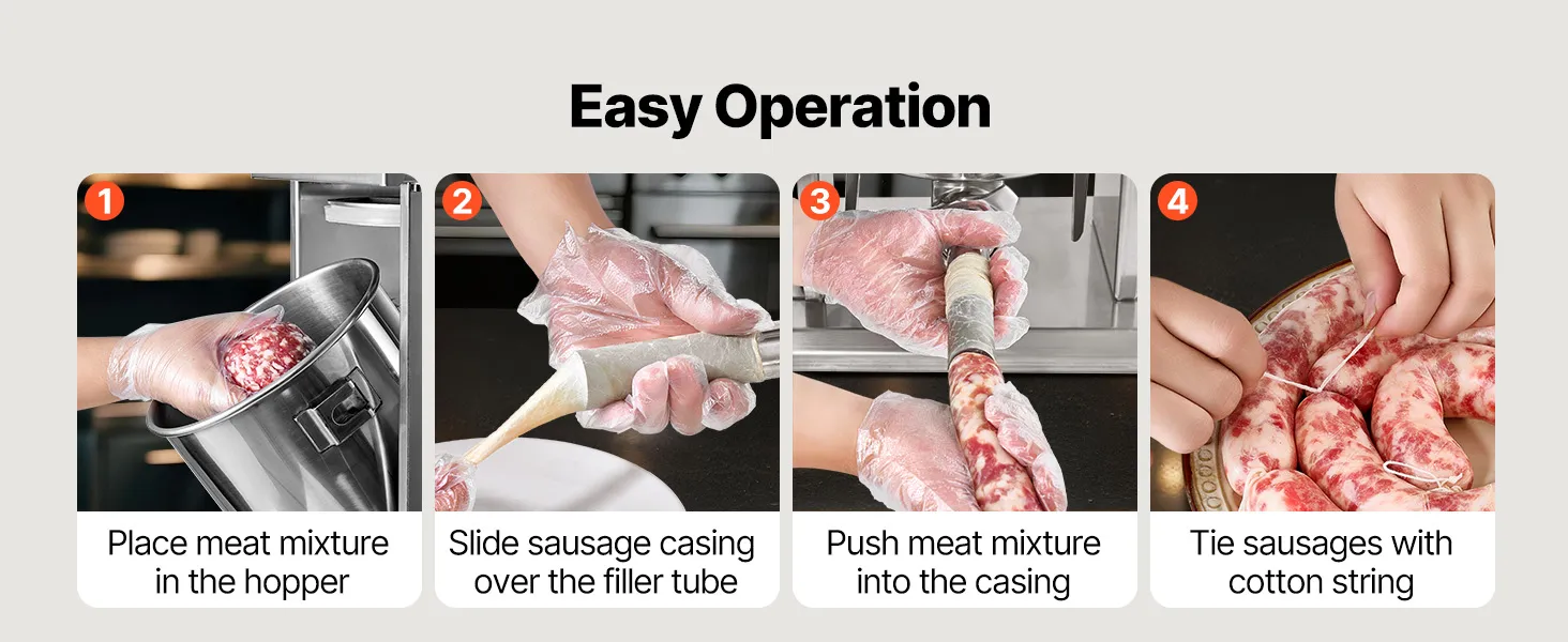 Táto elektrická plnička klobás je vybavená vylepšenou prítlačnou doskou s výfukovými otvormi pre pevnejšie klobásy s nízkym obsahom bublín. Plynulá regulácia otáčok zvyšuje účinnosť a jeho veľká kapacita 22 libier / 10 l je ideálna pre reštaurácie, supermarkety a iné komerčné zariadenia.