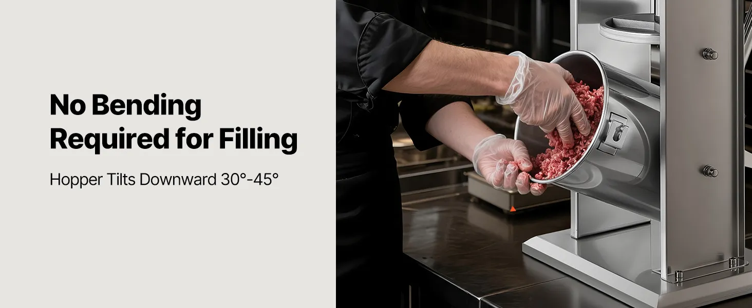 Tesne prilieha k vnútornej stene suda, aby nedochádzalo k úniku a zasekávaniu mäsa, čím sa predchádza neporiadku a odpadu na pracovnej doske.