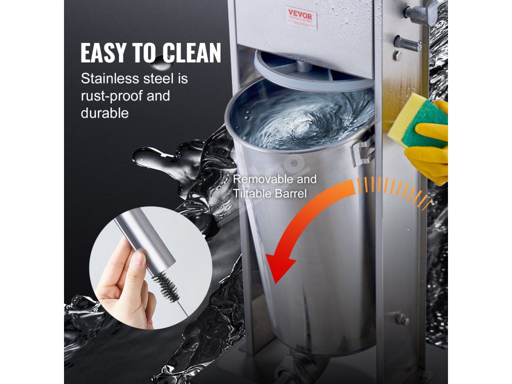 Manuálny plnič klobás 15 L / 30 LBS, 2 rých., nerez, 5 trubíc