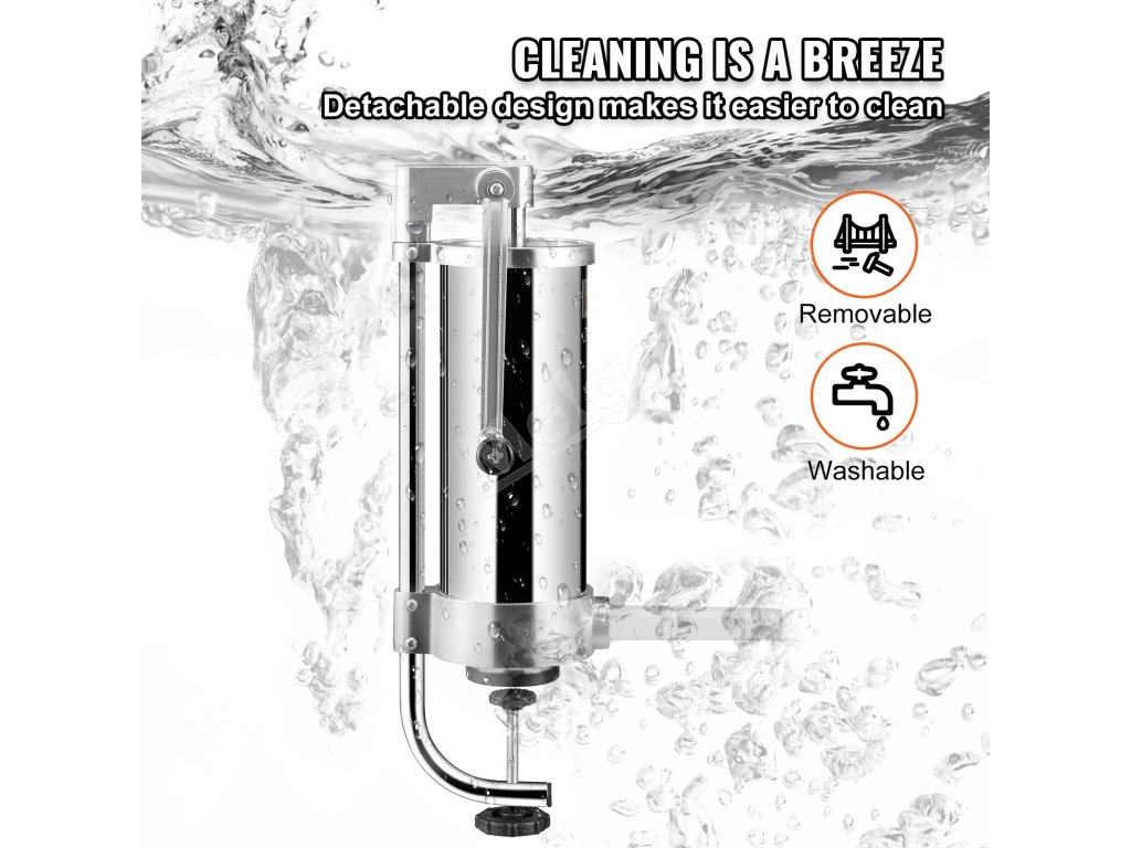 Valec je vyrobený z nehrdzavejúcej ocele. To zaručuje jeho dlhú životnosť. Môžete tak rýchlo pripraviť veľké dávky klobás. Tento komerčný plnič klobás je ideálny na rodinné oslavy alebo párty. Vďaka veľkej kapacite je jeho používanie efektívne a pohodlné. Je teda ideálny na domáce varenie aj na komerčné použitie.