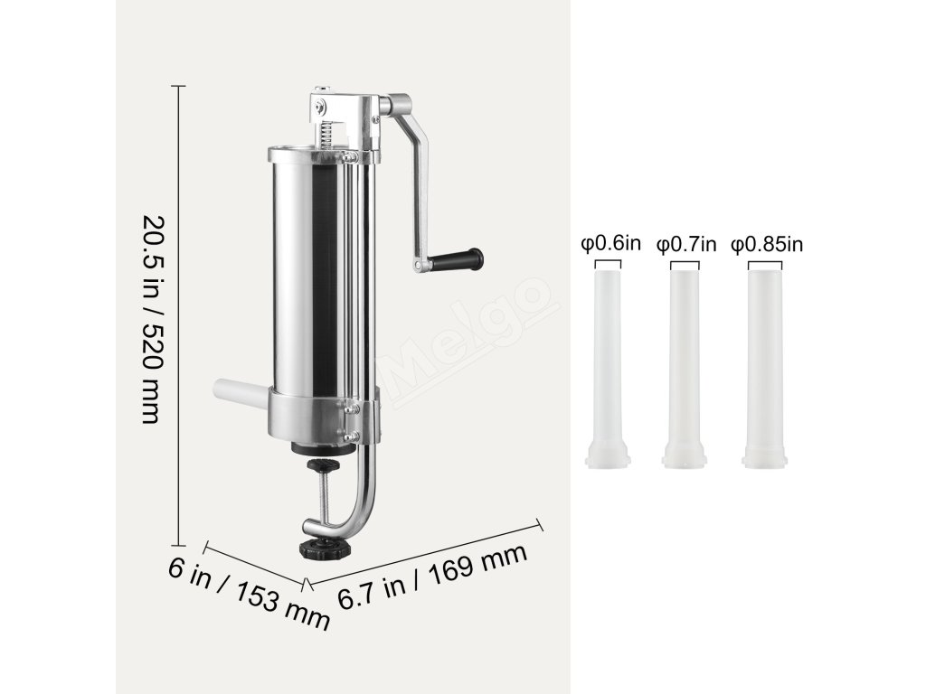 Plnička klobás 5LBS/3L, 304 nerez, vertikálna, 3 nadstavce, prísavka