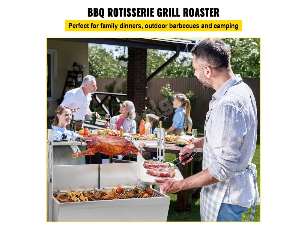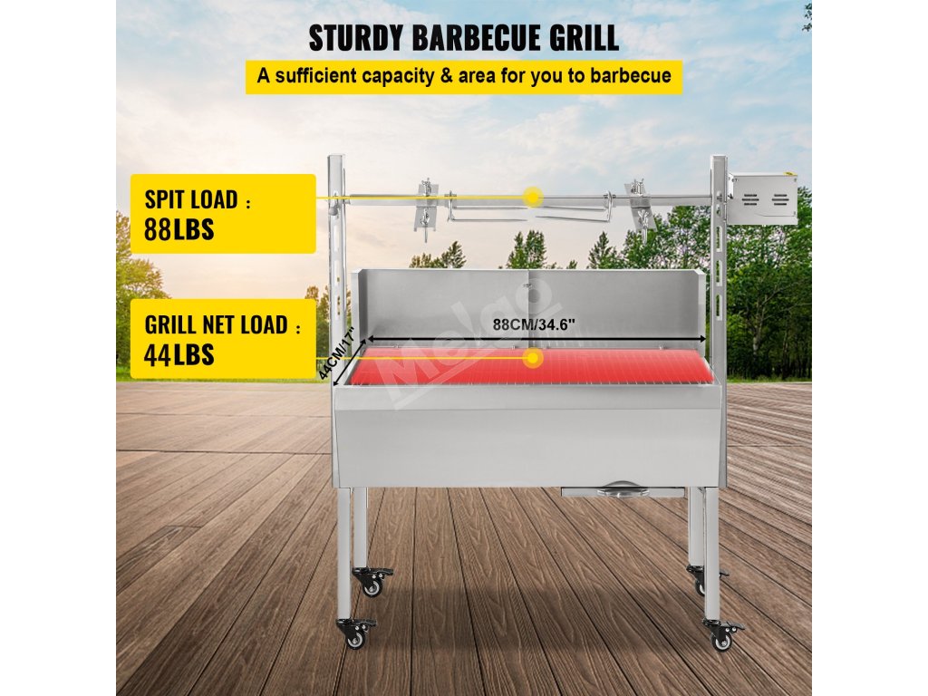 Tento grilovací rožeň na jahňacie mäso je ideálny na obchodné a rodinné použitie, ako aj na spoločenské grilovacie párty. Maximálna hmotnosť je až 132 libier, aby vyhovovala vašim potrebám pri grilovaní. Rám z nehrdzavejúcej ocele a silný motor zvyšujú stabilitu a účinnosť. Rôzne intímne prevedenia zlepšujú váš používateľský zážitok. Príďte si vychutnať chutné jedlo a spokojnú večeru s našou rúrou na jahňacie mäso.