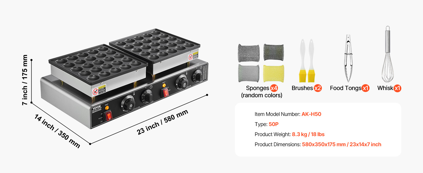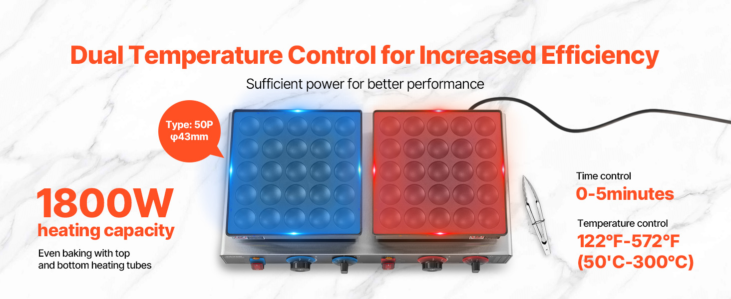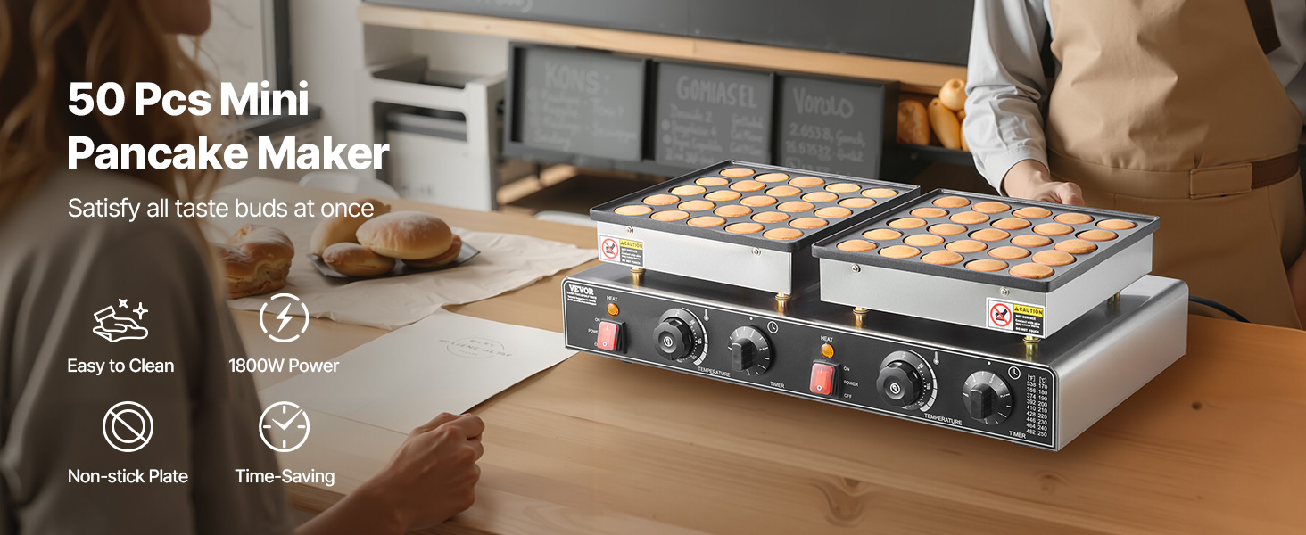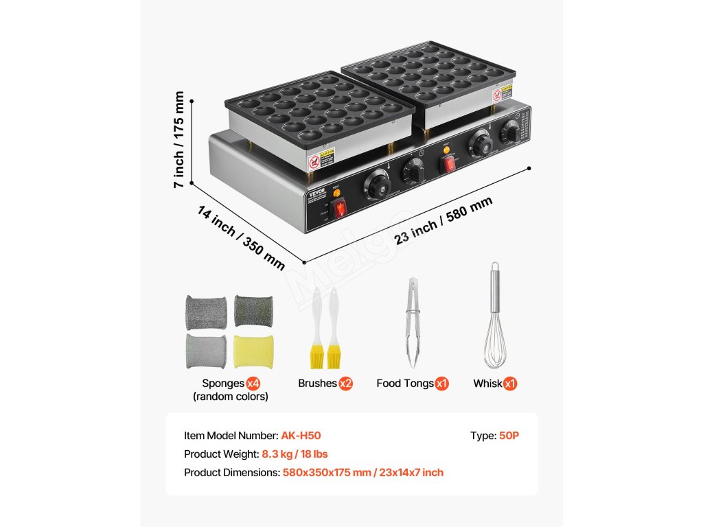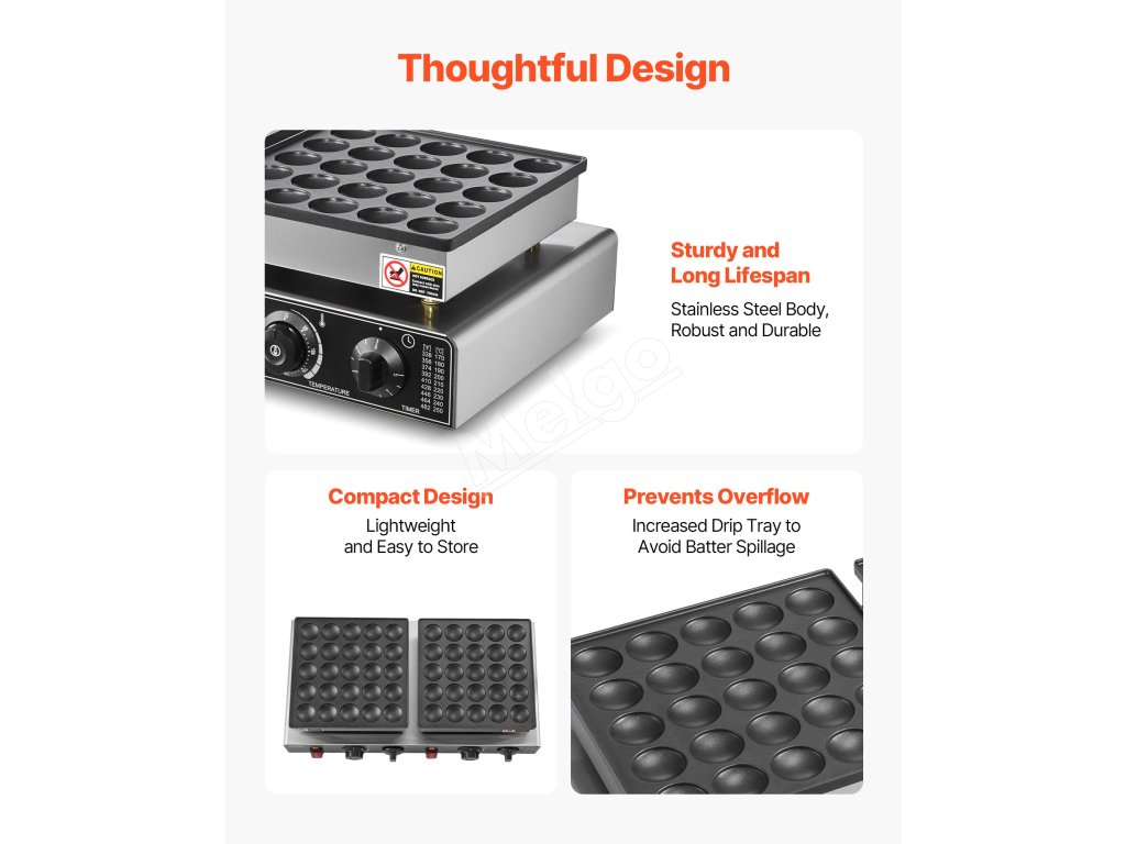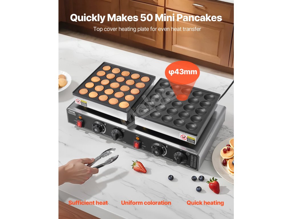 Elektrický gril na mini lievance 50 ks 1800W nerezový nepriľnavý