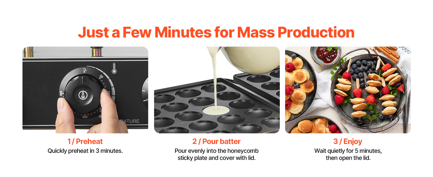 Hromadná výroba trvá len niekoľko minút. Pripravte cesto podľa receptu, nalejte ho do predhriateho plechu, chvíľu počkajte a po zaznení zvukového signálu si vychutnajte lahodné vafle. Dokáže upiecť dokonalé pečivo naraz, vďaka čomu budú vaše rána bohaté a pohodové.