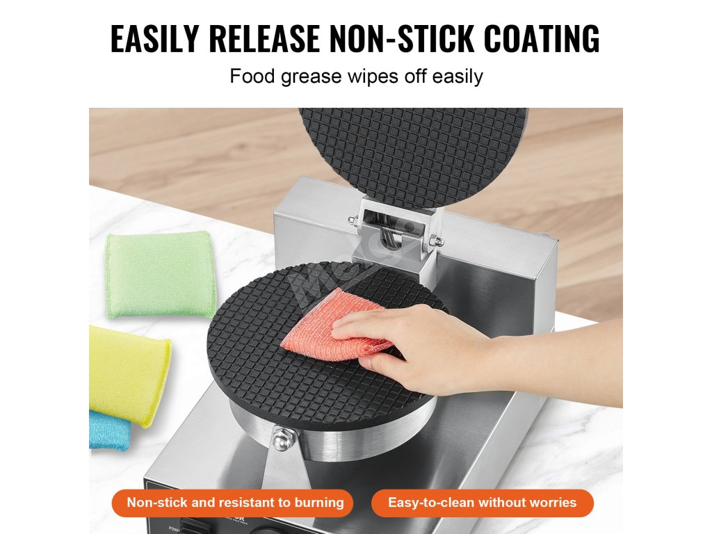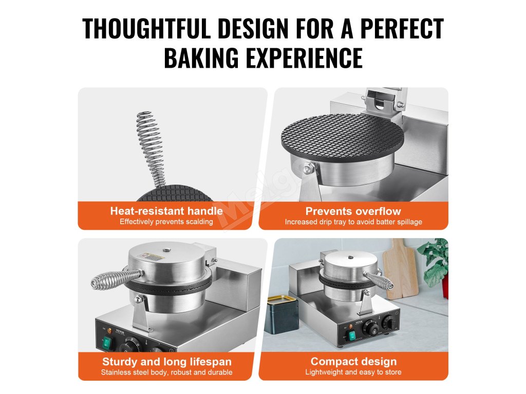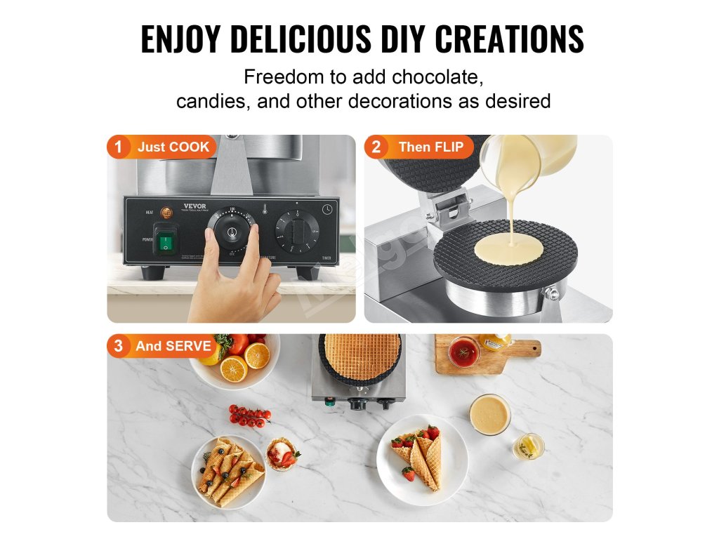 Tento stroj na vaflové kornúty môžete použiť na prípravu lahodných vaflových dezertov pre svoj obchod s dezertmi, ktoré uspokoja každého pri raňajkách alebo popoludňajšom čaji. Vďaka svojmu jedinečnému panelovému dizajnu vyniká, takže je najlepšou voľbou pre váš stánok s občerstvením.