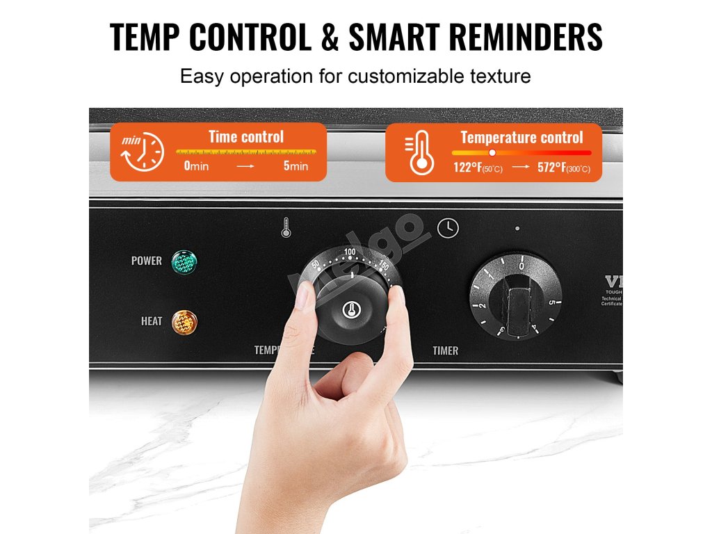 Je vybavený presným časovačom a gombíkom na nastavenie teploty, ktoré sú jasne označené. Keď je vafle hotová, vydá jasný zvukový signál. Vaflovač využíva technológiu uzavretého ohrevu, ktorá zabezpečuje rovnomerný ohrev na oboch stranách, rýchle tvarovanie a jednoduchú výrobu chutných vaflí.