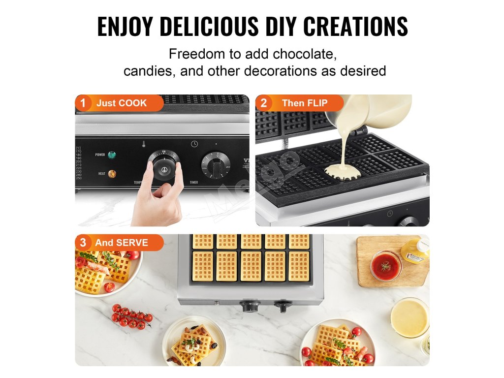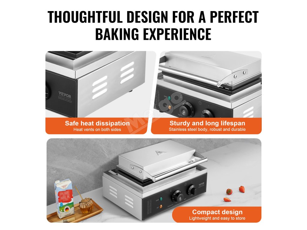 Tento stroj na pečenie vaflí môžete použiť na prípravu lahodných vafľových dezertov pre vašu cukráreň, ktoré uspokoja každého pri raňajkách alebo popoludňajšom čaji. Vďaka svojmu jedinečnému panelovému dizajnu vyniká, takže je najlepšou voľbou pre váš stánok s občerstvením.