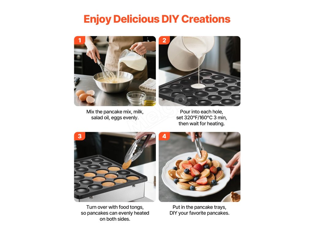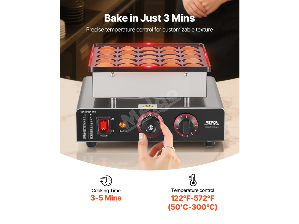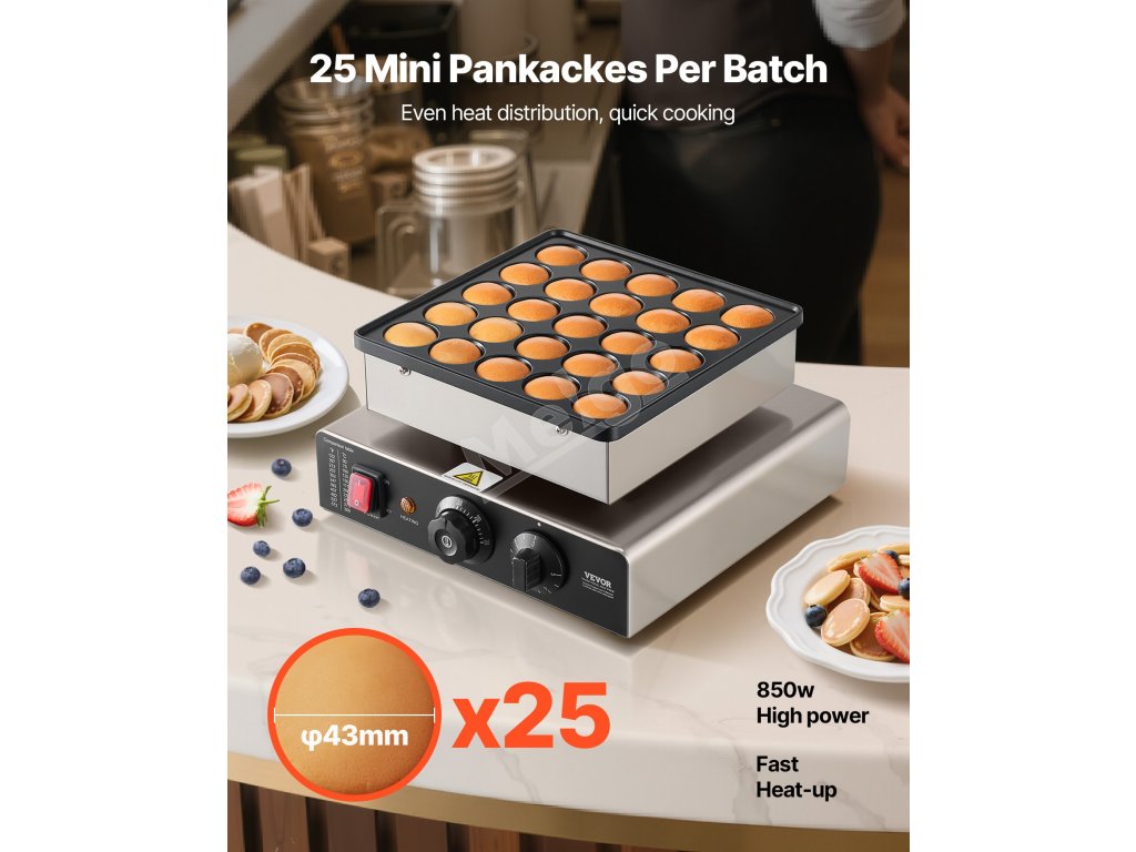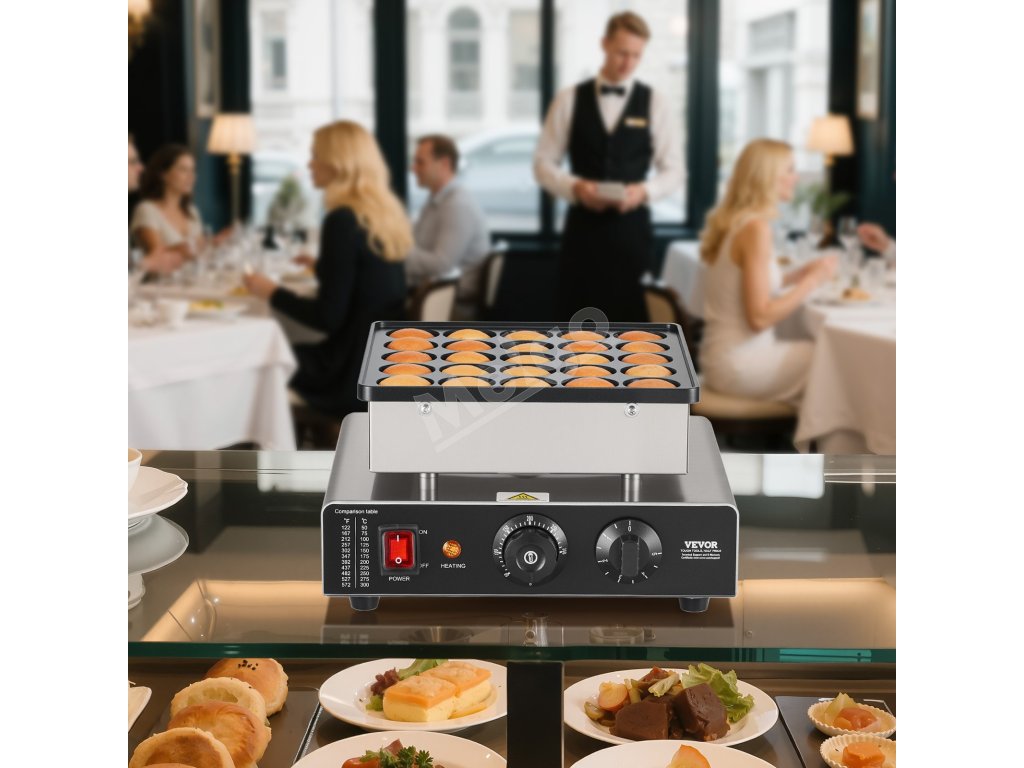 Pomocou tejto holandskej pekárne na palacinky môžete vytvárať chutné palacinkové dezerty pre svoju cukráreň. Upečie naraz až 25 vaflí, čo je ideálne na podávanie raňajok alebo popoludňajšieho čaju. Vďaka svojmu jedinečnému panelovému dizajnu vyniká ako geniálna voľba pre váš stánok s občerstvením.