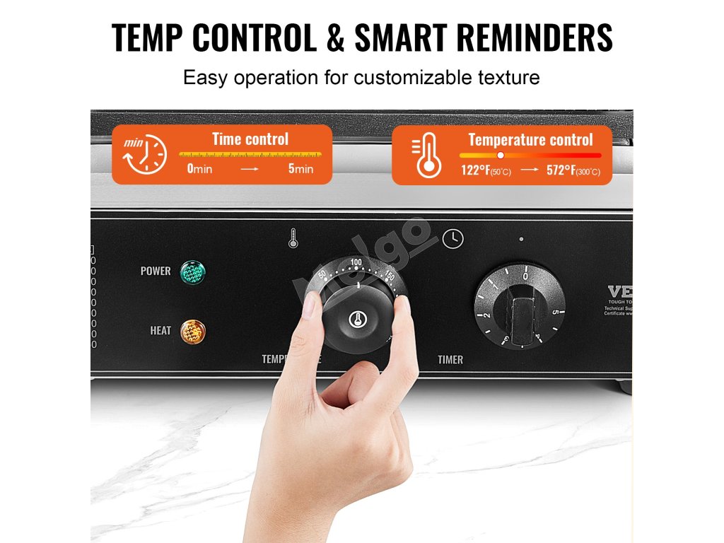 Je vybavený presným časovačom a gombíkom na nastavenie teploty, ktoré sú jasne označené. Keď je vafle hotová, vydá jasný zvukový signál. Vaflovač využíva technológiu uzavretého ohrevu, ktorá zabezpečuje rovnomerný ohrev na oboch stranách, rýchle tvarovanie a jednoduchú výrobu chutných vaflí.