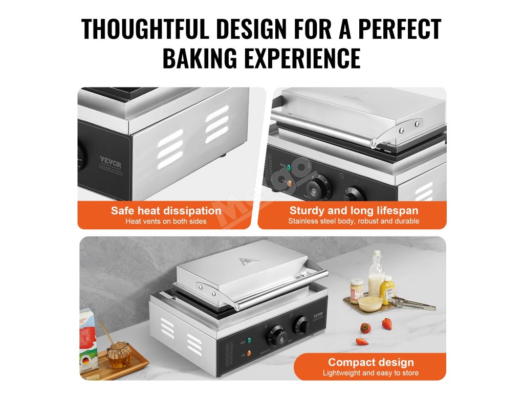 Tento stroj na pečenie vaflí môžete použiť na prípravu lahodných vafľových dezertov pre vašu cukráreň, ktoré uspokoja každého pri raňajkách alebo popoludňajšom čaji. Vďaka svojmu jedinečnému panelovému dizajnu vyniká, takže je najlepšou voľbou pre váš stánok s občerstvením.