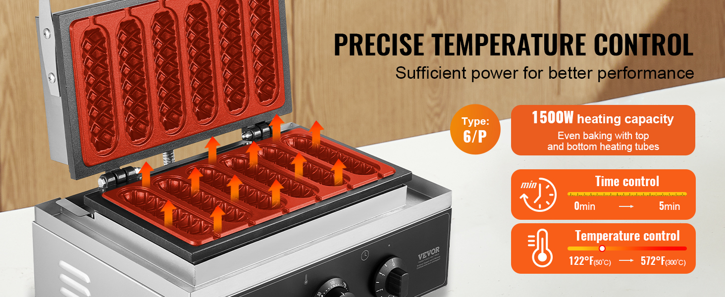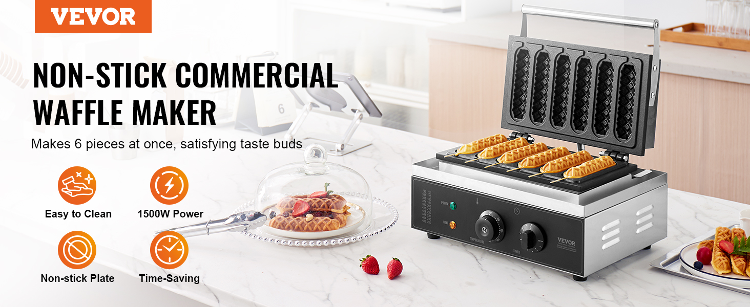 Vafľovač na tyčinky 6PCS 1500W nepriľnavý, regulácia teploty a času