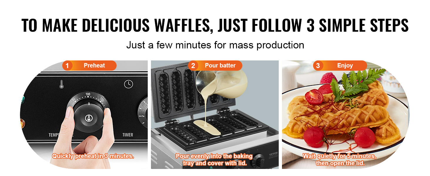 Hromadná výroba trvá len niekoľko minút. Pripravte cesto podľa receptu, nalejte ho do predhriateho plechu, zakryte, chvíľu počkajte a po zaznení zvukového signálu si vychutnajte lahodné vafle. Dokáže upiecť dokonalé vafle, vďaka čomu budú vaše rána bohaté a pohodové.
