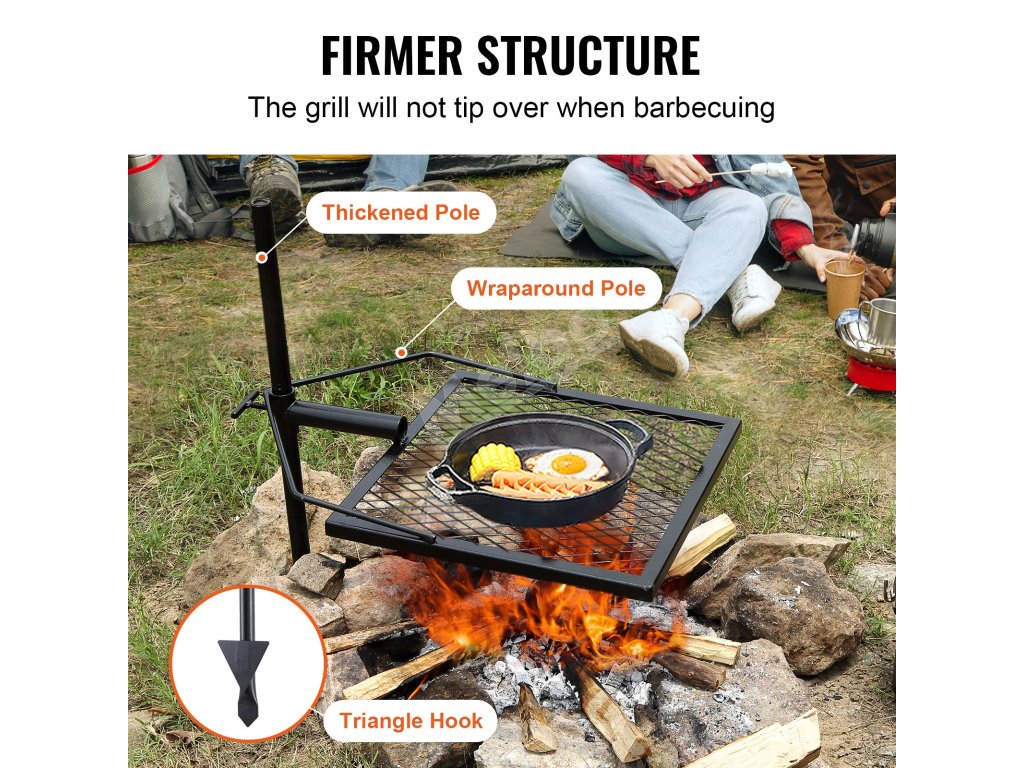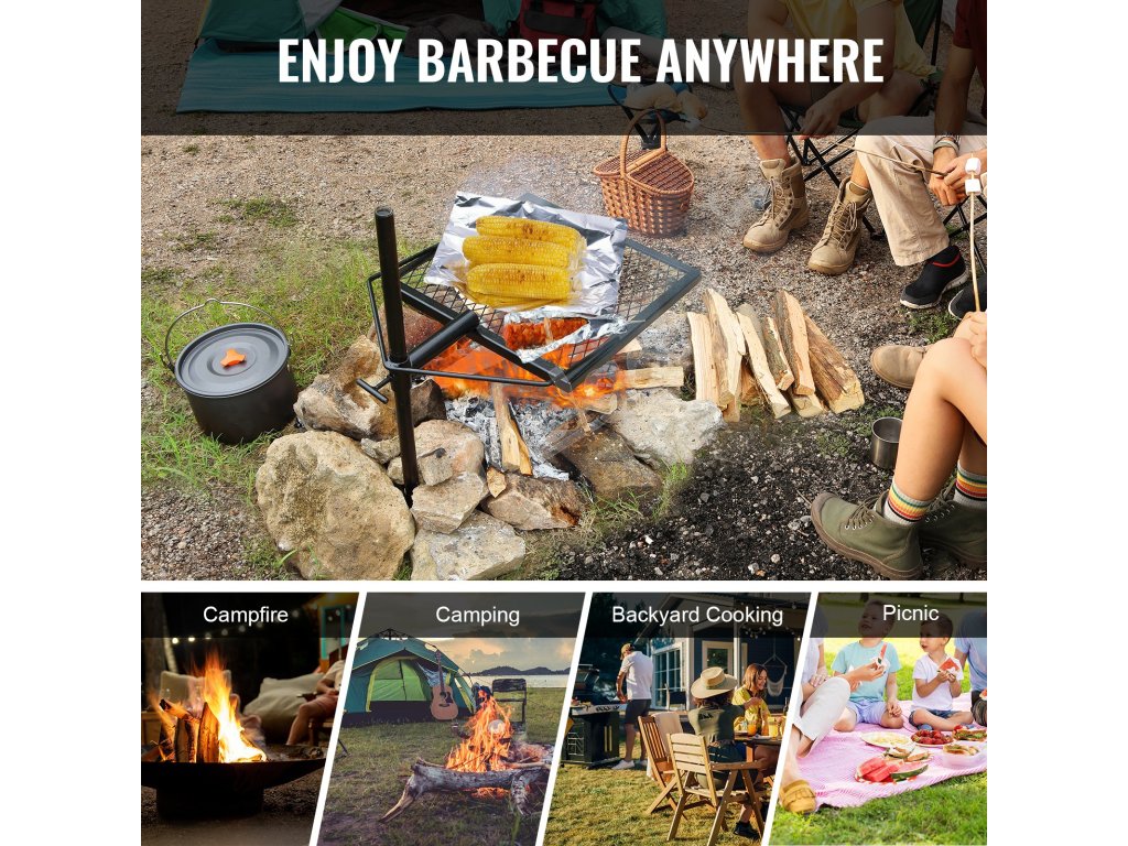 Grilovací rošt na ohnisko obsahuje rošt a tyč vloženú do akejkoľvek pôdy, takže ho môžete používať pri ohnisku v kempe, na dvore alebo v parku.