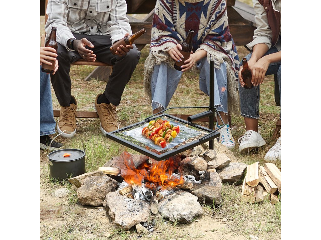 Rošt na grilovanie v táborovom ohnisku je určený na vonkajší kuchynský riad, panvice, panvice a hrnce, na vonkajšie varenie na otvorenom ohni, kempovanie, bbq, piknik, turistiku a cestovanie s batohom.